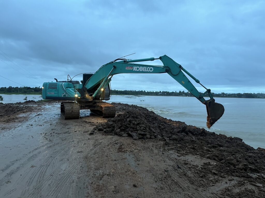 สำนักงานชลประทานที่ 6 โดยโครงการชลประทานมหาสารคามระดมเครื่องจักร เครื่องมือ และวัสดุหินใหญ่เข้าไปปิดกั้นน้ำทั้งสองฝั่งของทำนบดิน เพื่อไม่ให้เกิดการพังเสียหายขยายเพิ่มเติม ในวันนี้มอบหมายให้รองอธิบดีกรมชลประทาน 2 คนเดินทางไปอำนวยการซ่อมแซมทำนบและเร่งระบายน้ำเพื่อช่วยเหลือประชาชนด่วนที่สุด