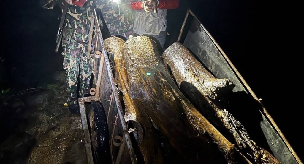สำหรับของกลางที่ตรวจยึดได้ประกอบด้วย ไม้พะยูง 4 ท่อน รถกระบะ รถจักรยานยนต์ และรถเข็นไม้ 1 คัน