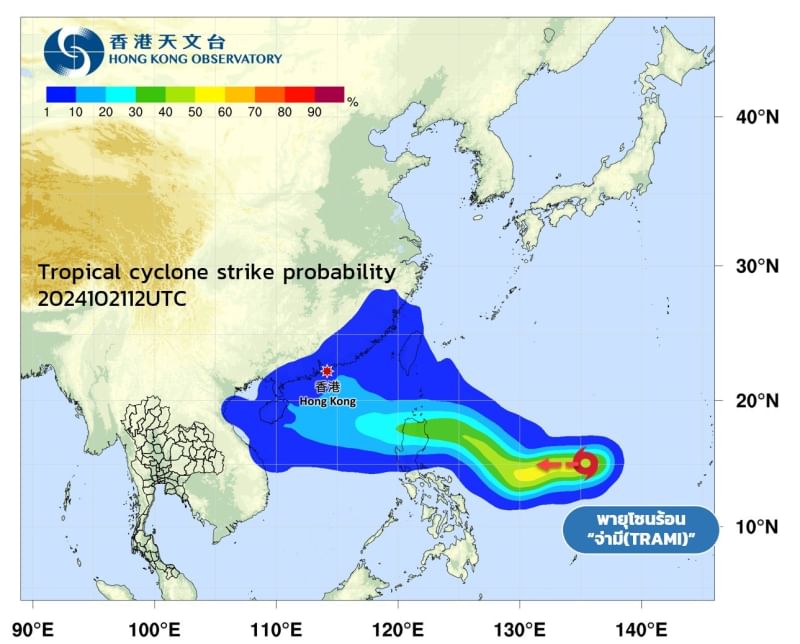 กรุงเทพฯ 22 ต.ค. – กรมอุตุนิยมวิทยาระบุ พายุดีเปรสชันในมหาสมุทรแปซิฟิกตะวันตก ทวีกำลังแรงขึ้นเป็นพายุโซนร้อน “จ่ามี (TRAMI)” แล้ว คาดขึ้นฝั่งฟิลิปปินส์ 24 – 25 ต.ค. นี้ แล้วเคลื่อนตัวเข้าใกล้ชายฝั่งเวียดนามในระยะต่อไป อาจส่งผลให้ภาคตะวันออกเฉียงเหนือของไทยมีลมแรง ส่วนภาคใต้ฝั่งอันดามันมีฝนตกต่อเนื่องและตกหนักบางแห่ง