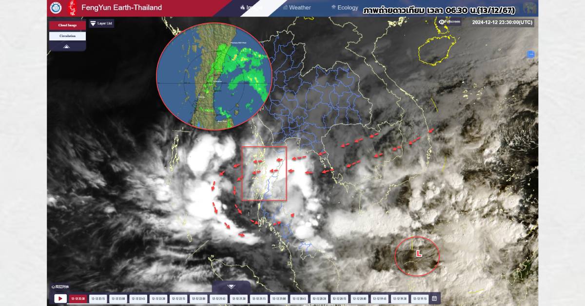 นายสมควร ต้นจาน ผู้อำนวยการกองพยากรณ์อากาศ กรมอุตุนิยมวิทยา กล่าวว่า ในช่วงวันที่ 13-16 ธันวาคม 2567 บริเวณความกดอากาศสูงหรือมวลอากาศเย็นกำลังค่อนข้างแรงอีกระลอกหนึ่งจากประเทศจีนแผ่ปกคลุมประเทศไทยตอนบนและทะเลจีนใต้ ลักษณะเช่นนี้ทำให้บริเวณดังกล่าวมีฝนเกิดขึ้นได้ในระยะแรก หลังจากนั้นอุณหภูมิจะลดลงกับมีลมแรง โดยภาคตะวันออกเฉียงเหนือ อุณหภูมิจะลดลง 4-8 องศาเซลเซียส ส่วนภาคเหนือ ภาคกลาง รวมทั้งกรุงเทพมหานครและปริมณฑล และภาคตะวันออก อุณหภูมิจะลดลง 2-5 องศาเซลเซียส