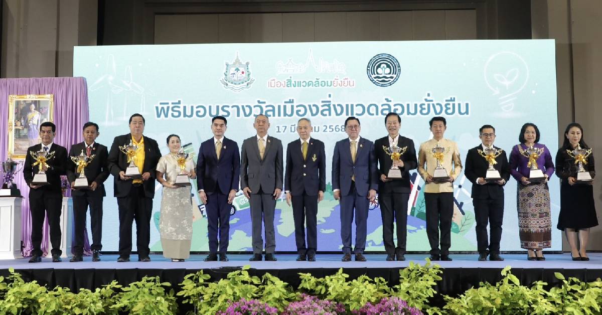 กระทรวงทรัพยากรธรรมชาติและสิ่งแวดล้อม โดยกรมการเปลี่ยนแปลงสภาพภูมิอากาศและสิ่งแวดล้อม จัดพิธีมอบรางวัล “เมืองสิ่งแวดล้อมยั่งยืน” ประจำปี 2567 โดยมีนายอำพน กิตติอำพน องคมนตรี เป็นประธานในพิธี นายเฉลิมชัย ศรีอ่อน รัฐมนตรีว่าการกระทรวงทรัพยากรธรรมชาติและสิ่งแวดล้อม กล่าวรายงาน เพื่อยกย่องเชิดชูเกียรติ 81 เมืองสิ่งแวดล้อมยั่งยืน ต้นแบบพัฒนาเมืองอย่างสมดุล พร้อมตั้งรับ ปรับตัวต่อการเปลี่ยนแปลงสภาพภูมิอากาศ