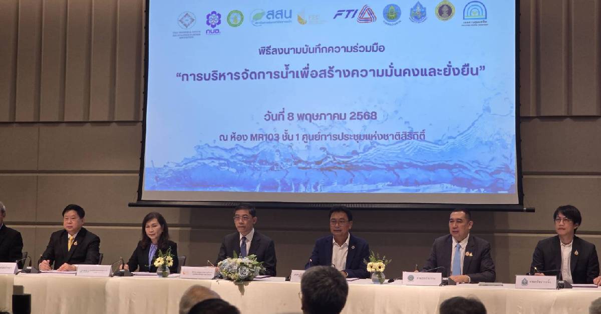 สภาอุตสาหกรรมแห่งประเทศไทย (ส.อ.ท.) ลงนามบันทึกข้อตกลงความร่วมมือ (MOU) กับ 9 หน่วยงานหลักด้านน้ำ ทั้งภาครัฐและเอกชน เพื่อยกระดับการบริหารจัดการน้ำอย่างบูรณาการ ภายใต้แนวคิด “น้ำมั่นคง น้ำยั่งยืน” เพื่อสร้างระบบเศรษฐกิจน้ำที่สามารถรับมือกับความท้าทาย ทั้งภัยแล้ง น้ำท่วม และผลกระทบจากการเปลี่ยนแปลงสภาพภูมิอากาศ
