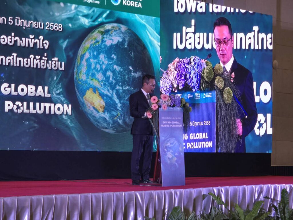 กรุงเทพฯ 5 มิ.ย. – กระทรวงทรัพยากรธรรมชาติและสิ่งแวดล้อม จัดกิจกรรมวันสิ่งแวดล้อมโลก ปี 2568 ส่งเสริมความร่วมมือแก้ปัญหาพลาสติกอย่างยั่งยืน ภายใต้แนวคิด “ใช้พลาสติกอย่างเข้าใจ เปลี่ยนประเทศไทยให้ยั่งยืน” โดยมีนายนราพัฒน์ แก้วทอง ผู้ช่วยรัฐมนตรีประจำกระทรวงฯ เป็นประธานเปิดงาน และ ดร.พิรุณ สัยยะสิทธิ์พานิช อธิบดีกรมการเปลี่ยนแปลงสภาพภูมิอากาศและสิ่งแวดล้อม กล่าวรายงาน