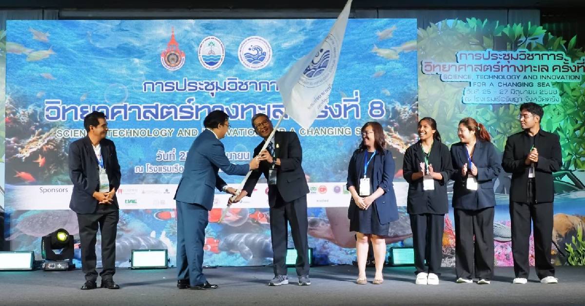 ตรัง 27 มิ.ย. – กรม ทช. ร่วมกับมหาวิทยาลัยเทคโนโลยีราชมงคลศรีวิชัย จัดพิธีปิดการประชุมวิชาการวิทยาศาสตร์ทางทะเล ครั้งที่ 8 ภายใต้หัวข้อ “วิทยาศาสตร์ เทคโนโลยี และนวัตกรรมเพื่อการเปลี่ยนแปลงของท้องทะเล” พร้อมส่งมอบเจ้าภาพการประชุมครั้งต่อไปให้สถาบันเทคโนโลยีพระจอมเกล้าเจ้าคุณทหารลาดกระบัง