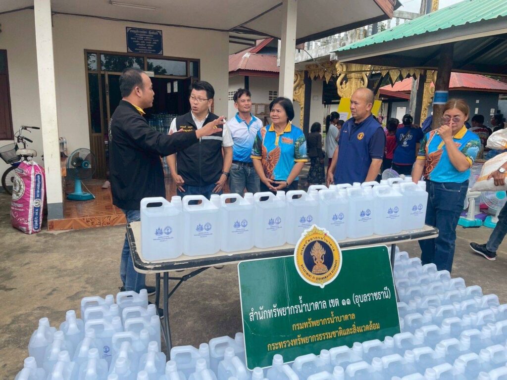 นายภาดล ถาวรกฤชรัตน์ อธิบดีกรมทรัพยากรน้ำบาดาลกล่าวว่า สำนักทรัพยากรน้ำบาดาล เขต 11 (อุบลราชธานี) ซึ่งรับผิดชอบพื้นที่ 5 จังหวัด ได้แก่ อุบลราชธานี ศรีสะเกษ ยโสธร อำนาจเจริญ และร้อยเอ็ด ได้ระดมกำลังเจ้าหน้าที่เข้าดำเนินการผลิตน้ำดื่มสะอาดบรรจุขวด รวมแล้วกว่า 50,000 ขวด พร้อมส่งมอบให้ประชาชนในศูนย์พักพิงชั่วคราวในจังหวัดอุบลราชธานีและศรีสะเกษอย่างต่อเนื่อง