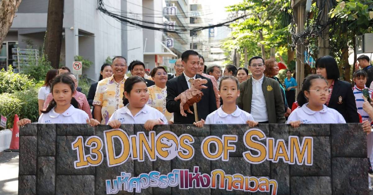 นายพิชิต สมบัติมาก อธิบดีกรมทรัพยากรธรณี เป็นประธานในพิธีนิทรรศการไดโนเสาร์ไทยสุดตระการตา ภายใต้ชื่องาน “13 Dinos of Siam : มหัศจรรย์แห่งกาลเวลา” บรรยากาศภายในงานเต็มไปด้วยสีสันแห่งโลกดึกดำบรรพ์ ด้วยขบวนพาเหรดไดโนเสาร์จำลองเคลื่อนไหวเสมือนจริง 13 สายพันธุ์ไทย พร้อมมาสคอตไดโนเสาร์สุดน่ารักที่สร้างความสนุกสนานให้แก่ผู้ร่วมงานทุกเพศทุกวัย
