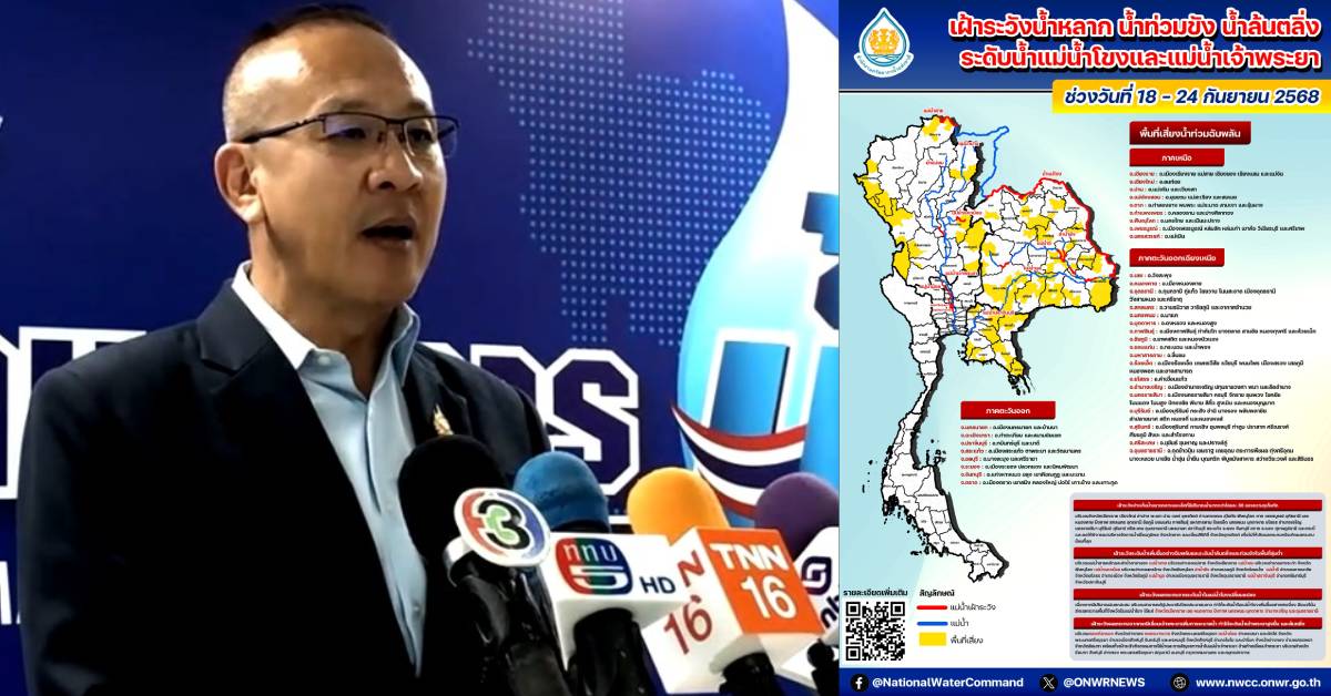 สำนักงานทรัพยากรน้ำแห่งชาติ (สทนช.) ออกประกาศฉบับที่แจ้งเตือนพื้นที่เสี่ยงภัยน้ำหลาก ดินโคลนถล่ม น้ำท่วมขัง และน้ำล้นตลิ่งในช่วงวันที่ 18 – 24 กันยายน 2568 โดยเฉพาะ 3 ลุ่มน้ำใหญ่ ได้แก่ ลุ่มน้ำเจ้าพระยา ลุ่มน้ำชี-มูล และลุ่มน้ำโขงฝั่งตะวันออกเฉียงเหนือ พร้อมสั่งการหน่วยงานที่เกี่ยวข้องติดตาม-รับมือสถานการณ์ฝนตกหนักที่อาจส่งผลกระทบต่อ 52 จังหวัดทั่วประเทศ