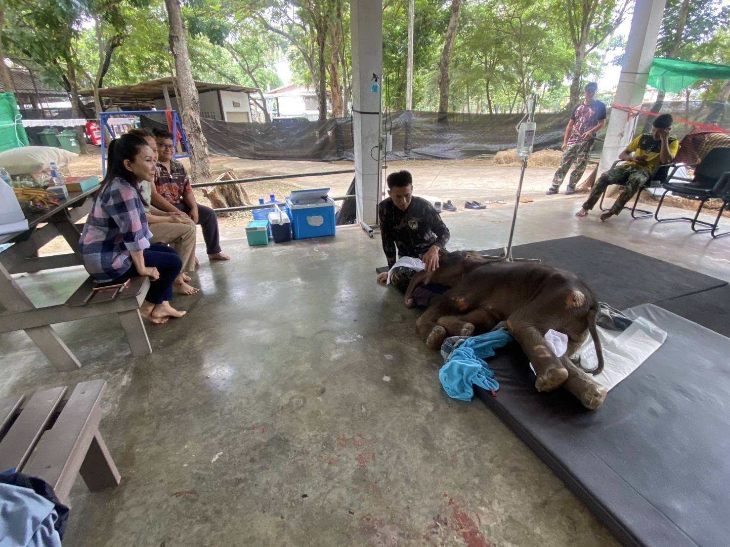 นางสาวกัญจนายังให้กำลังใจแก่ทีมสัตวแพทย์และเจ้าหน้าที่ผู้ปฏิบัติงานซึ่งต้องดูแลลูกช้างป่าอย่างใกล้ชิดตลอด 24 ชั่วโมง.-512-สำนักข่าวไทย