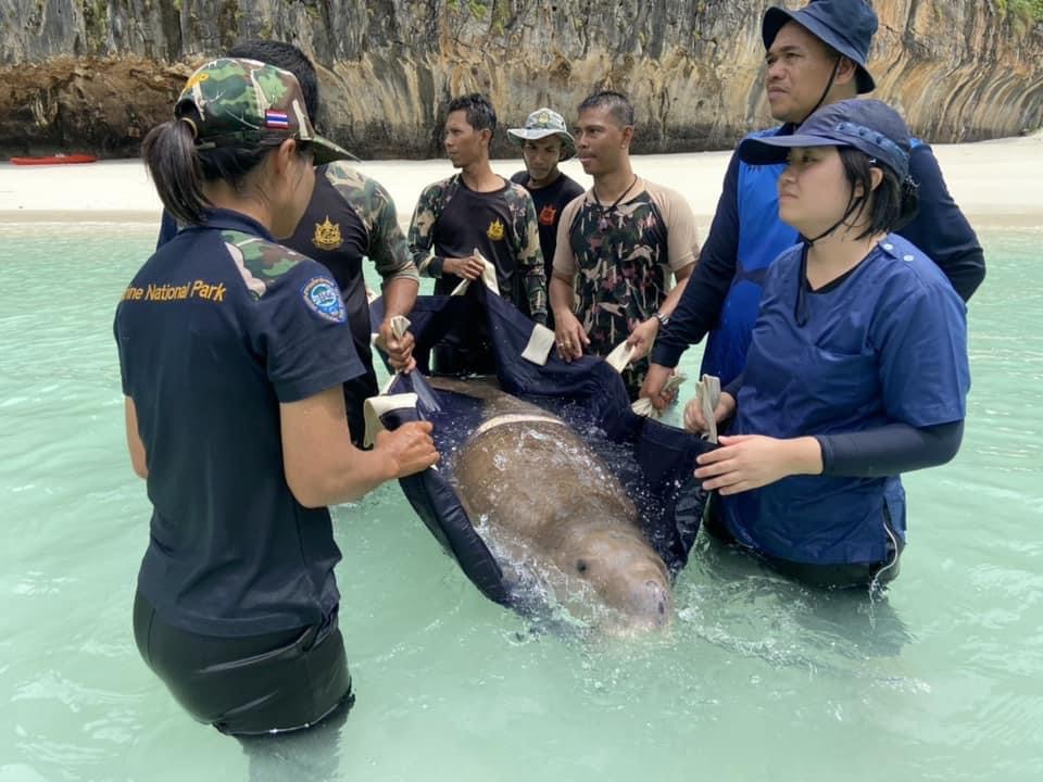 หลังจากเจ้าหน้าที่อุทยานแห่งชาติหาดนพรัตน์ธารา-หมู่เกาะพีพี พบพะยูนเพศเมีย ลอยกลางทะเลบริเวณอ่าวมาหยาหมู่เกาะพีพี ต.อ่าวนาง อ.เมือง จ.กระบี่