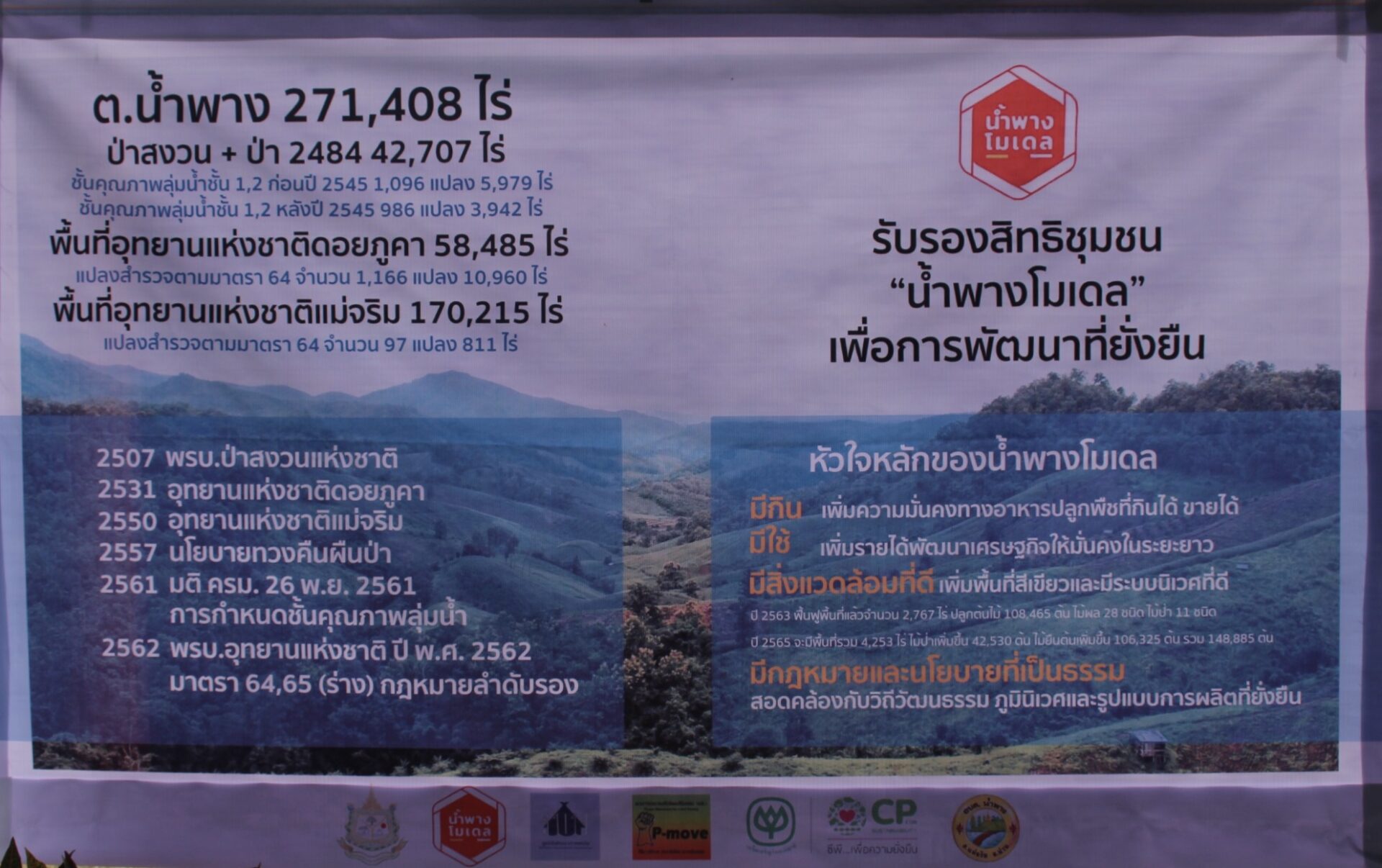กระทรวงทรัพยากรธรรมชาติและสิ่งแวดล้อม และคณะผู้บริหารกระทรวงฯ ลงพื้นที่ตรวจเยี่ยมการบริหารจัดการทรัพยากรป่าไม้และที่ดินตามแนวทาง “น้ำพางโมเดล” อ.แม่จริม จังหวัดน่าน ในวาระครบ 5 ปี โครงการน้ำพางโมเดล เพื่อแก้ไขปัญหาภูเขาหัวโล้นสู่ระบบการเกษตรเชิงนิเวศ ตำบลน้ำพาง จำนวน 10 หมู่บ้าน พื้นที่ 4,253 ไร่จำนวนสมาชิกทั้งสิ้น 285 ราย โดยมีผู้นำท้องถิ่น วิสาหกิจชุมชน กลุ่มเกษตรกร โรงเรียนบ้านน้ำพาง และองค์กรภาคีเครือข่ายภาคประชาสังคม ร่วมการสถาปนาน้ำพางโมเดล ที่เปลี่ยนภูเขาหัวโล้นเป็นระบบเกษตรเชิงนิเวศ เพื่อความก้าวหน้าในการปรับเปลี่ยนวิถีการผลิตทางการเกษตรรูปแบบน้ำพางโมเดล ที่ไม่ทำลายสร้างความเสียหายต่อทรัพยากรธรรมชาติ และระบบนิเวศ