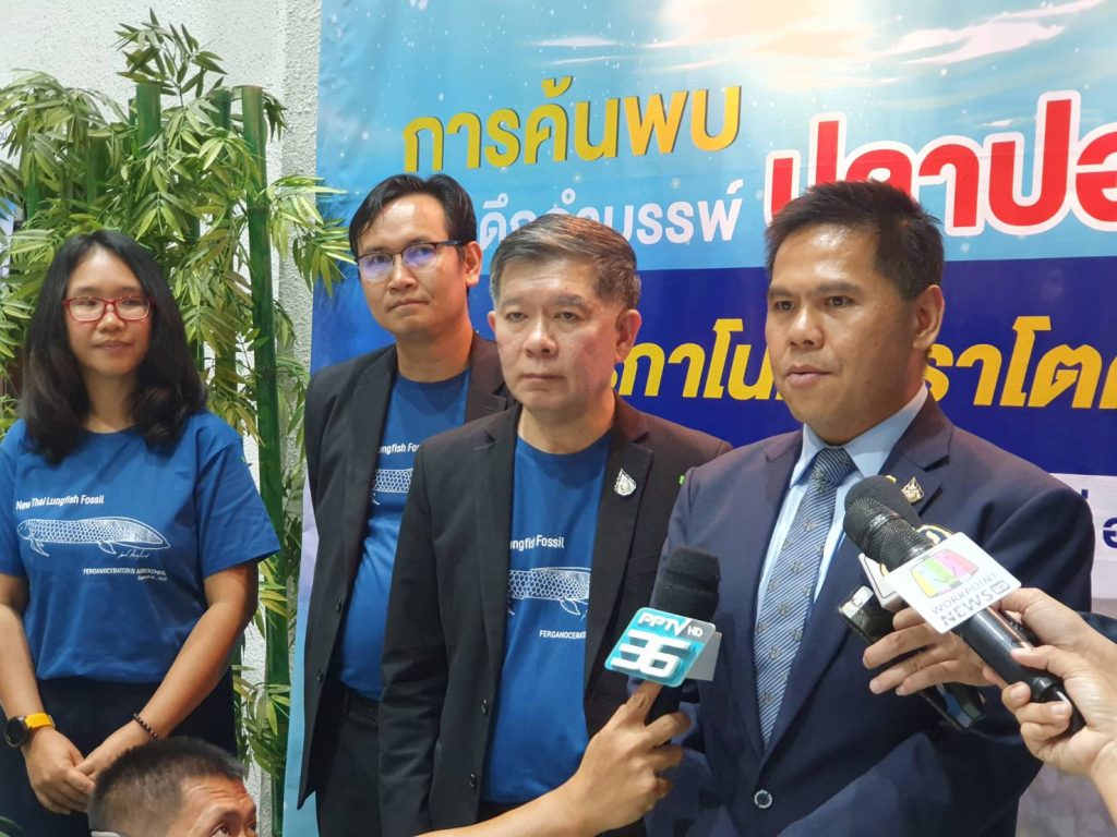 กระทรวงทรัพยากรธรรมชาติและสิ่งแวดล้อม กรมทรัพยากรธรณี แถลงผลการศึกษาวิจัยซากดึกดำบรรพ์ปลาปอดชนิดใหม่ของโลก ถูกค้นพบที่แหล่งซากดึกดำบรรพ์ภูน้อย จังหวัดกาฬสินธุ์