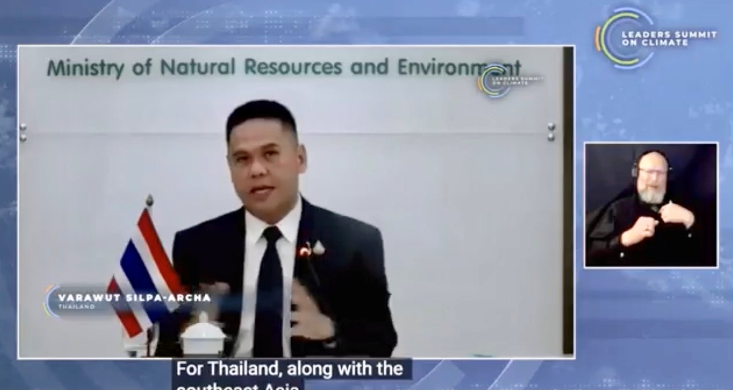 โดยการประชุมสุดยอดผู้นำโลก Leaders Summit on Climate จัดโดย ประธานาธิบดีสหรัฐอเมริกา นาย Joe Biden มีนายวราวุธ ศิลปอาชา รัฐมนตรีว่าการกระทรวงทรัพยากรธรรมชาติและสิ่งแวดล้อมของประเทศไทย ได้รับเชิญเข้าร่วม กล่าวแสดงมุมมองและจุดยืนของไทย ใน Session 3: “Adaptation and Resilience”