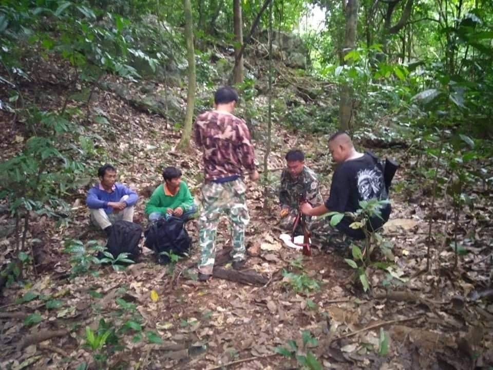 จากการสอบสวนทราบว่า ชื่อ นายมิน อ่องกับนายมิน เทพ แล้วตรวจยึดอุปกรณ์ที่นำติดตัวมาได้แก่ อาวุธปืนลูกกรดยาวไทยประดิษฐ์ ขนาด .22 มิลลิเมตร ความยาวกระบอกปืน 40 เซนติเมตร 1 กระบอก (ไม่มีหมายเลขทะเบียนปืน) กระสุนปืนขนาด .22 มิลลิเมตร 44 ลูก มีดเหน็บ 1 เล่ม ไฟฉายคาดหัว 2 อัน กระเป๋าสะพายหลังสีดำ 1 ใบ กระเป๋าสะพายหลังสีดำแถบน้ำเงิน 1 ใบ และเปลนอน 2 ผืน