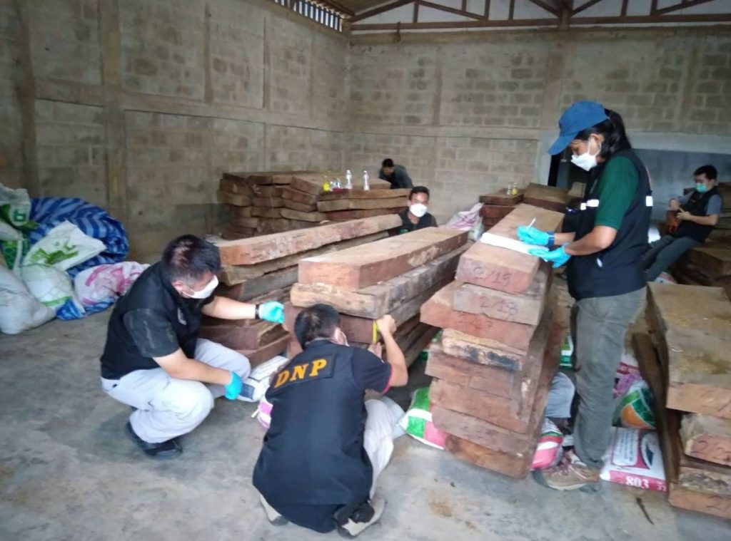 นายพนัชกร โพธิบัณฑิต ผู้อำนวยการส่วนยุทธการด้านป้องกันและปราบปรามกล่าวว่า ผลการตรวจค้นพบเจ้าหน้าที่ไม่พบบุคคลใดอาศัยอยู่ พบไม้หวงห้าม (ประดู่แปรรูป) 105 แผ่น/เหลี่ยม ปริมาตร 11.882 ลูกบาศก์เมตร คิดค่าเสียหายเบื้องต้นประมาณ 831,600 บาท ตรวจสอบไม่พบหนังสือใบเบิกทางหรือหนังสือกำกับไม้แปรรูปที่ใช้แทนใบเบิกทาง ตรวจสอบไม้ประดู่แปรรูปพบมีร่องรอยการแปรรูปด้วยเลื่อยโซ่ยนต์ ผิวเนื้อไม้เป็นลูกคลื่นผิวไม่เรียบ มีลักษณะใหม่ สด ไม่เคยผ่านการเป็นสิ่งปลูกสร้างหรือเครื่องใช้อื่นใดมาก่อน จากการสอบถามประชาชนที่มีบ้านเรือนอยู่ใกล้ ๆ กับโกดังดังกล่าวให้การว่า เมื่อวันที่ 12 สิงหาคม 2564