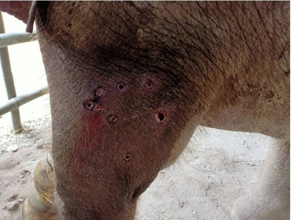 คุณหมอเผด็จกล่าวว่า แผลขาหน้าขวาที่โดนบ่วงรัดนั้น เนื้อตายหมดแล้ว จะต้องตัดออกแล้วขูดเนื้อเพื่อรักษาอาการอักเสบ จากนั้นจะเลเซอร์เพื่อเร่งสร้างผิวหนังมาหุ้มซึ่งจะช่วยลดโอกาสติดเชื้อ รวมทั้งเตรียมทำรองเท้าเสริมส้นให้เพื่อให้เดินได้ ส่วนที่ต้นขาหน้าซ้ายเอกซเรย์พบเศษกระสุนฝัง โดยเป็นชิ้นใหญ่ 9 ชิ้นและชิ้นเล็กๆ อีก 10 กว่าชิ้น เมื่อมาถึงสวนนงนุชต้องประเมินว่า ลูกช้างพร้อมรับยาสลบหรือยาซึมเพื่อผ่าตัดหรือไม่เนื่องจากทิ้งไว้นานจะเป็นอันตราย ขณะนี้อักเสบและบวมมาก โดยตั้งใจจะใช้เครื่องเอกซเรย์ที่ฉายภาพเคลื่อนไหวแบบเรียลไทม์ประกอบการคีบเศษกระสุนออก แทนการผ่าตัดแบบเปิดเนื่องจากลูกช้างยังเล็ก นอกจากนี้ยังเตรียมให้น้องขวากรักกินนมจากแม่รับด้วยซึ่งจะช่วยเสริมภูมิคุ้มกัน หากแผลหายแล้ว ต้องทำกายภาพบำบัดด้วยการว่ายน้ำเพื่อไม่ให้กล้ามเนื้อฝ่อจนไม่สามารถเดินได้.- สำนักข่าวไทย