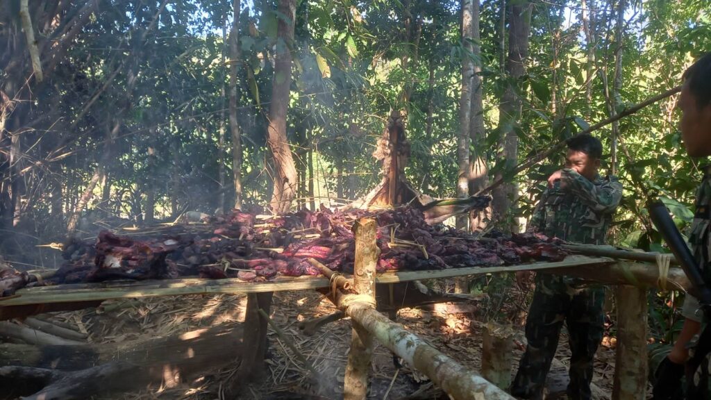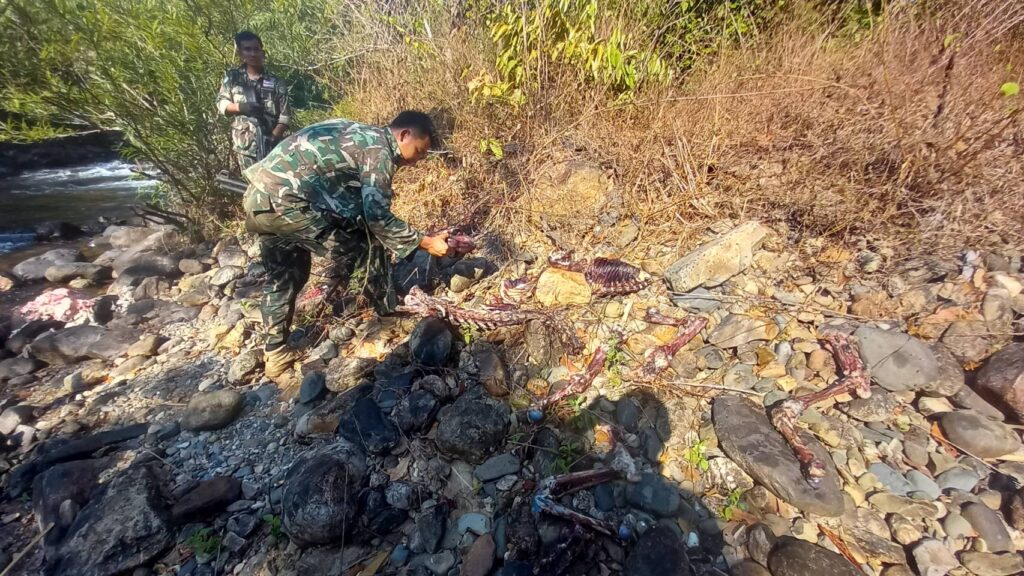 ในที่เกิดเหตุตรวจพบแคร่ร้านย่างเนื้อสัตว์และซากเสือโคร่ง 2 ซาก สันนิฐานว่า เป็นเสือโคร่งที่ออกหากินระหว่างชายแดนไทย -พม่า พร้อมอาวุธปืน 4 กระบอก และอุปกรณ์การกระทำผิดอื่นๆ รวม 29 รายการ ตรวจสอบซากเสือเบื้องต้น พบว่า เป็นเสือโคร่งเพศผู้น้ำหนัก 80 กิโลกรัมและเพศเมีย 50 กิโลกรัมซึ่งคาดว่า พรานล่าเพื่อจะนำมาจำหน่าย