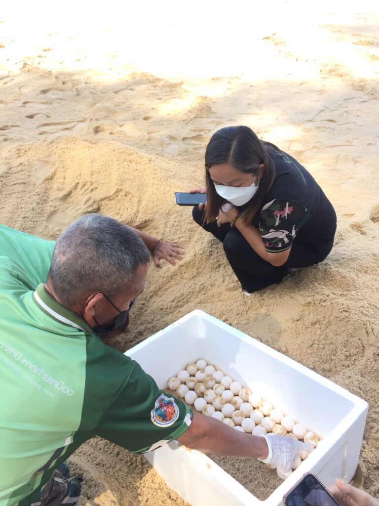 พังงา 24 ก.พ – เจ้าหน้าที่อุทยานแห่งชาติเขาลำปี-หาดท้ายเหมือง จ. พังงาร่วมกันย้ายไข่เต่าทะเลจากรังที่แม่เต่าขึ้นวางไข่ ป้องกันน้ำทะเลท่วมถึงทำให้ไข่เต่าเสียหาย โดยยังไม่สามารถระบุชนิดของเต่าได้ในขณะนี้