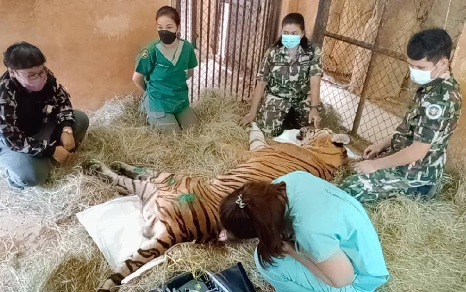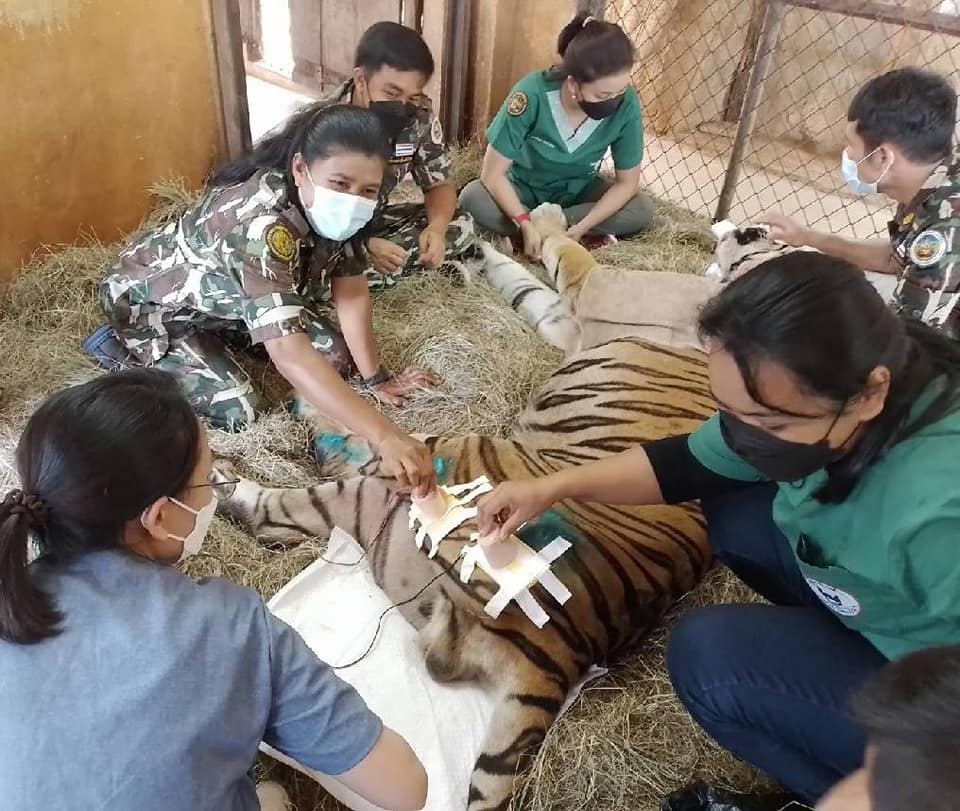 สุพรรณบุรี 18 มี.ค. – กรมอุทยานแห่งชาติ สัตว์ป่า และพันธุ์พืช นำการฝังเข็มซึ่งศาสตร์แพทย์ทางเลือกมารักษาเสือโคร่งชราที่ป่วยกะทันหันเป็นครั้งแรก