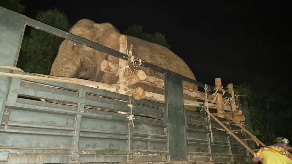 ต่อมาเคลื่อนย้ายขึ้นรถบรรทุกเพื่อไปยังเขตรักษาพันธุ์สัตว์ป่าเขาอ่างฤาไน แล้วปล่อยที่บริเวณทุ่งกระทิงห่างจากตัวที่ทำการเขตรักษาพันธุ์สัตว์ป่าเขาอ่างฤาไนเข้าไปในป่าลึกประมาณ 16 กิโลเมตร เมื่อถึงที่หมายสัตว์แพทย์ให้ยาแก้ฤทธิ์ยาซึมและสังเกตุอาการ จากนั้นให้ท “สีดอโหนก” ลงจากรถบรรทุก โดยตลอดเวลาเคลื่อนย้าย ช้างป่าอยู่ในความดูแลของสัตวแพทย์อย่างใกล้ชิดตลอดเวลาและไม่มีอาการผิดปกติแต่อย่างใด