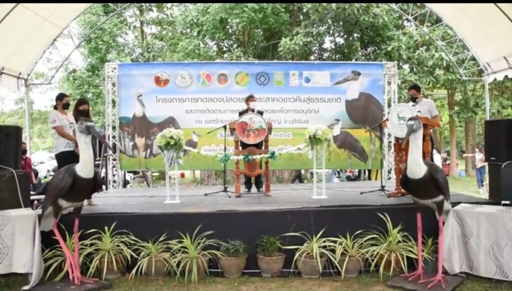 นายเทวินทร์ รัตนะวงศะวัต ผู้อำนวยการสวนสัตว์เปิดเขาเขียวกล่าวว่า ร่วมกับกรมอุทยานแห่งชาติ สัตว์ป่า และพันธุ์พืช และหน่วยงานพันธมิตรจัดทำ “โครงการทดลองปล่อยนกกระสาคอขาวคืนสู่ธรรมชาติและการติดตามภายหลังการปล่อยเพื่อการอนุรักษ์” โดยเปิดตัวโครงการที่เขตรักษาพันธุ์สัตว์ป่าดงใหญ่ จ. บุรีรัมย์