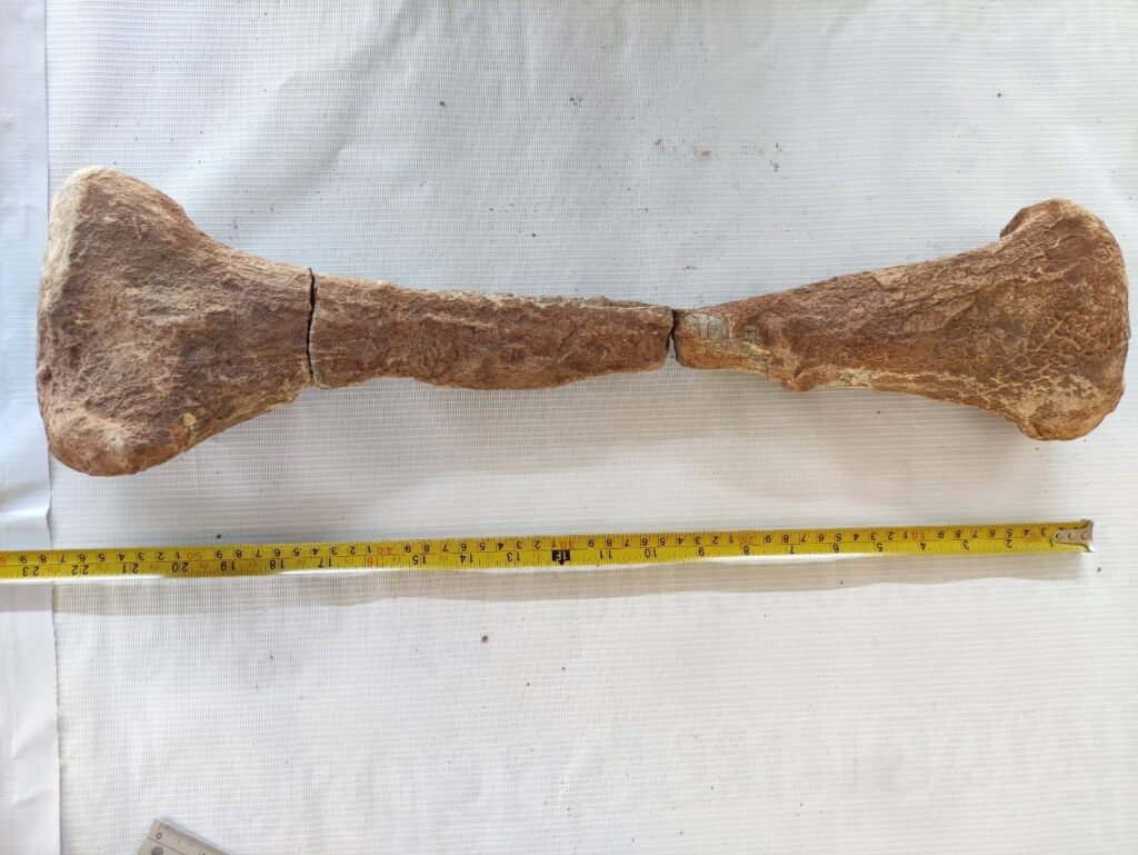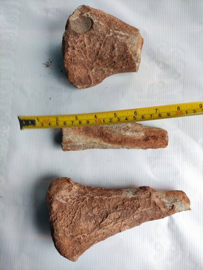 ทีมนักธรณีวิทยาของอุทยานธรณีเพชรบูรณ์ได้เดินทางไปเก็บข้อมูลและส่งรูปภาพดังกล่าวมาให้ยังสำนักงานทรัพยากรธรณี เขต 1 กรมทรัพยากรธรณีตรวจสอบ เบื้องต้นพบว่า ตัวอย่างซากดึกดำบรรพ์ที่พบประกอบด้วย 3 ชิ้นส่วนที่แตกหักจากกัน โดยลักษณะของตัวอย่างแสดงลักษณะรูพรุนของเนื้อเยื่อของกระดูกสัตว์มีกระดูกสันหลัง เมื่อลองนำมาประกอบต่อกันพบว่าเกือบชื่อมต่อกันได้ ลักษณะของกระดูกยาวเรียวเล็ก ปลายบนมีลักษณะเป็นรูปสี่เหลี่ยมโต ตอนกลางเรียว ส่วนปลายล่างเป็นลักษระแง่งแหลม ซึ่งจากลักษระดังกล่าวคล้ายกระดูกส่วนน่อง (fibula) ของสัตว์มีกระดูกสันหลัง