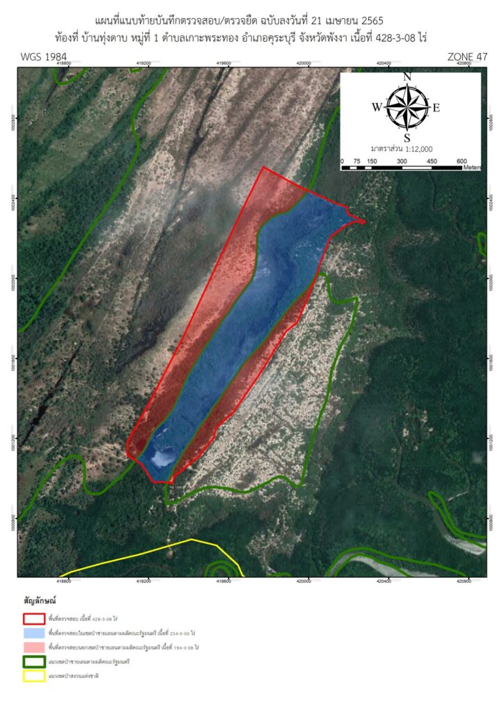 นายโสภณ ทองดี อธิบดีกรมทรัพยากรทางทะเลและชายฝั่งกล่าวว่า สั่งการให้ตรวจสอบสภาพพื้นที่แล้ว พบว่า พื้นที่ทั้งหมดอยู่ในเขตป่าสงวนแห่งชาติป่าเลนและเขตป่าไม้ถาวรทั้งแปลง นอกจากนี้ พื้นที่ส่วนใหญ่คาบเกี่ยวกับเขตป่าชายเลนตามมติคณะรัฐมนตรี ในพื้นที่พบต้นไม้ถูกทำลายทั้งแปลงจึงได้ดำเนินการแจ้งความร้องทุกข์กล่าวโทษต่อพนักงานสอบสวนสถานีตำรวจภูธรคุระบุรีตาม ปจว.ข้อ 5 ลงวันที่ 22 เมษายน. 2565 ซึ่งการดำเนินการดังกล่าวมีความผิดตามพระราชบัญญัติป่าไม้ พ.ศ. 2484 และพระราชบัญญัติป่าสงวนแห่งชาติ พ.ศ. 2507 พระราชบัญญัติส่งเสริมการบริหารจัดการทรัพยากรทางทะเลและชายฝั่ง พ.ศ. 2558 พระราชบัญญัติส่งเสริมและรักษาคุณภาพสิ่งแวดล้อมแห่งชาติ พ.ศ. 2535 อีกทั้งยังขัดต่อมติคณะรัฐมนตรีเมื่อวันที่ 23 กรกฎาคม 2534 และวันที่ 17 ตุลาคม 2543 ที่ห้ามมิให้อนุญาตการใช้ประโยชน์ในเขตป่าชายเลนทุกกรณี ทั้งภาครัฐและเอกชน ทั้งนี้ หากมีความจำเป็นอย่างยิ่งที่จะต้องเข้าใช้ประโยชน์โดยมิอาจหลีกเลี่ยงได้ก็ต้องขอยกเว้นมติคณะรัฐมนตรีเป็นกรณีๆ ไป