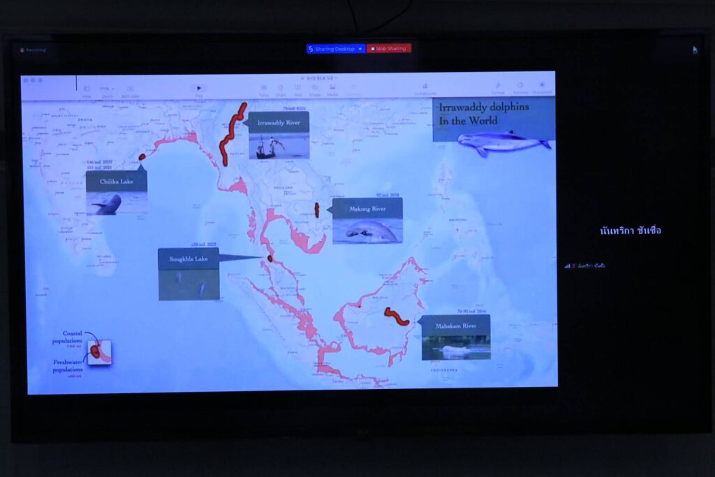 นายโสภณกล่าวว่า ในการประชุมวันนี้ได้นำเสนอรายงานสถานการณ์โลมาอิรวดีทะเลสาบสงขลา การสำรวจประชากรโลมาอิรวดีในทะเลสาบสงขลาตอนบน โดยการสำรวจทางเรือ และทางอากาศโดยเครื่องบินเล็กปีกตรึง และอากาศยานไร้คนขับ (Drone) ตั้งแต่ปี 2558 – 2564 พบว่ามีแนวโน้มประชากรลดลง โดยในปี 2558 มีรายงานการพบประมาณ 27 ตัว แต่ปัจจุบันมีจำนวนเหลืออยู่ประมาณ 14 – 20 ตัว โดยสาเหตุการตายหลักเกิดจากการติดเครื่องมือประมง ถึงร้อยละ 60 หากสามารถลดอัตราการตายจากเครื่องมือประมงให้เป็นศูนย์ โดยคาดว่าประชากรโลมาอิรวดีจะเพิ่มขึ้นเป็นจำนวนมากกว่า 30 ตัว ภายใน 10 ปี และแต่ละหน่วยงานได้รายงานผลการดำเนินงานที่ผ่านมาเกี่ยวกับการอนุรักษ์โลมาอิรวดีในทะเลสาบสงขลา