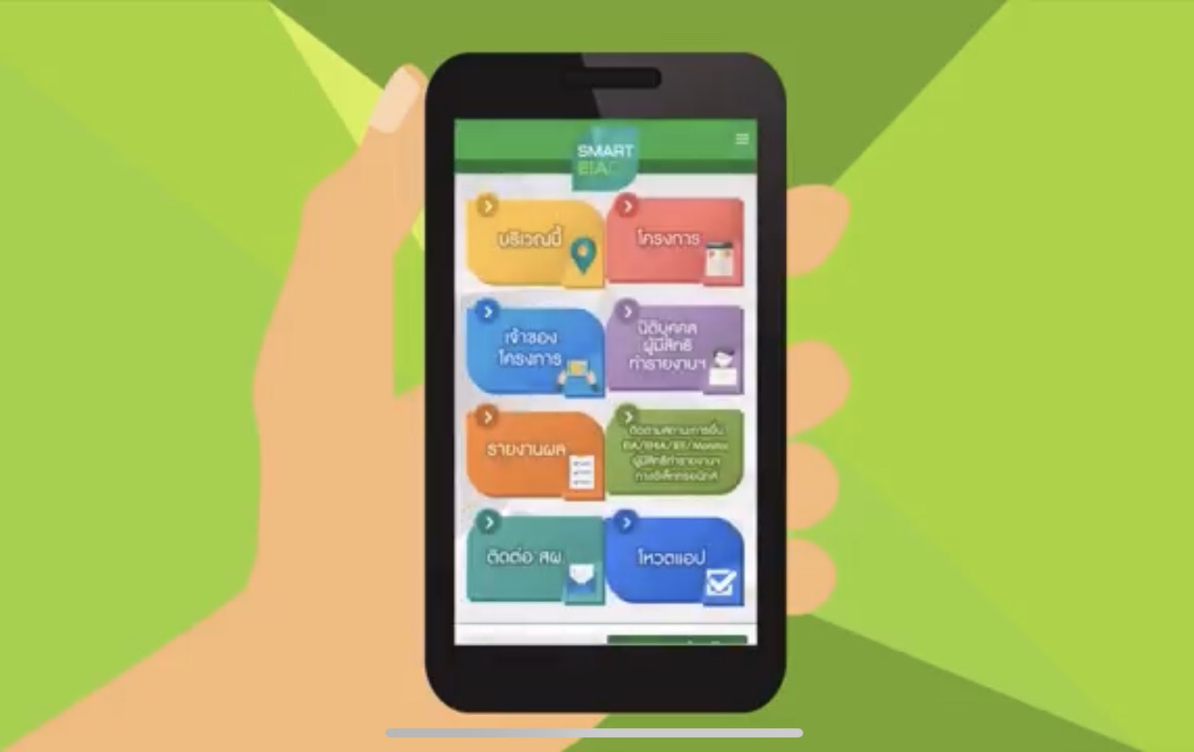 สำหรับการพิจารณารายงานการประเมินผลกระทบสิ่งแวดล้อม หรือ EIA สผ. ได้จัดทำศูนย์ข้อมูลการประเมินผลกระทบสิ่งแวดล้อม Smart EIA ให้ผู้เกี่ยวข้องเข้าถึงข้อมูลได้สะดวกรวดเร็ว มีการทำงานที่โปร่งใส ตรวจสอบได้ รวมถึงง่ายต่อการใช้งานในพื้นที่ สามารถสืบค้นข้อมูล ค้นหาโครงการที่ต้องจัดทำ EIA ที่ผ่านความเห็นชอบจาก สผ. ตรวจสอบได้ว่าบริเวณใกล้เคียงมีโครงการที่ผ่านความเห็นชอบแล้วหรือไม่ และมีรายละเอียดโครงการอย่างไรได้ทันทีผ่านแอพพิเคชั่น โดยประชาชน และหน่วยงานต่าง ๆ สามารถตรวจสอบผลการพิจารณารายงาน EIA สถานะการส่งรายงาน Monitor และสถานภาพการขอรับใบอนุญาตเป็นผู้มีสิทธิทำรายงาน EIA ที่ยื่นผ่านทางอิเล็กทรอนิกส์