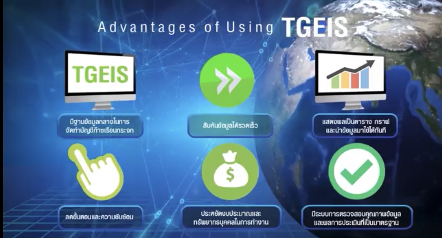 ระบบสารสนเทศการจัดทำบัญชีก๊าซเรือนกระจกของประเทศไทย TGEIS หรือ Thailand Greenhouse Gas Emissions Inventory systems เป็นระบบที่ได้รับความร่วมมือและการสนับสนุนจากรัฐบาลออสเตรเลีย ออกแบบระบบฐานข้อมูลพร้อมพัฒนาเว็บไซต์เป็น เว็บแอพพลิเคชั่นระบบปิด ที่ใช้งานผ่าน Intranet Web Base ช่วยให้มั่นใจในความปลอดภัยตามมาตรฐานสากล โดยมีวิธีประเมินผลการปล่อยก๊าซเรือนกระจกตามคู่มือ IPCC 2006 ทำให้ไทยมีฐานข้อมูลกลางในการรวบรวมและจัดเก็บข้อมูล เพื่อประเมินบัญชีก๊าซเรือนกระจกอย่างเป็นระบบ และประกอบในรายงานที่เสนอต่อUNFCCC ได้ ทั้งนี้ยังเป็นข้อมูลพื้นฐานสำหรับนำไปใช้ประกอบในการวางแผนกำหนดนโยบาย มาตรการการลดก๊าซเรือนกระจก รวมถึงการกำหนดทิศทางการวางยุทธศาสตร์ของประเทศอีกด้วย
