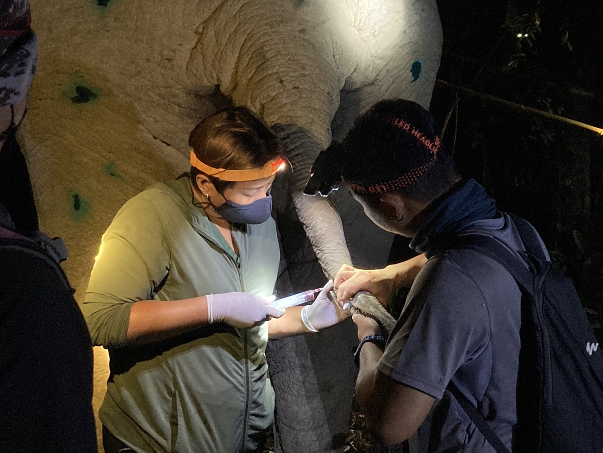 ที่ผ่านมาต้องจัดเจ้าหน้าที่อุทยานฯ ร่วมกับทหารชุดเฉพาะกิจจงอางศึก ดูแลความปลอดภัยช้างและคน บริเวณพื้นที่ล่อแหลมที่เสี่ยงต่อการเกิดปัญหาช้างป่าเดินข้ามถนนตามเส้นทางสายพุไทร-ไทรเอน ซึ่งเป็นเส้นทางหลักไปน้ำตกป่าละอู แหล่งท่องเที่ยวสำคัญใน ต.ห้วยสัตว์ใหญ่ รวมทั้งภายในชุมชน ช่วงกลางคืนที่ช้างชอบออกหากิน ต่อมามีการเสนอเรื่องขอย้ายช้างป่าทั้ง 2 ตัว ในความควบคุมของสัตวแพทย์ไปไว้ยังป่าลึกในเขตอุทยานแห่งชาติแก่งกระจาน เพื่อตัดปัญหา แต่ช้างทั้ง 2 ตัวรู้ทัน จะแอบซ่อน ทำให้ไม่สามารถดำเนินการได้