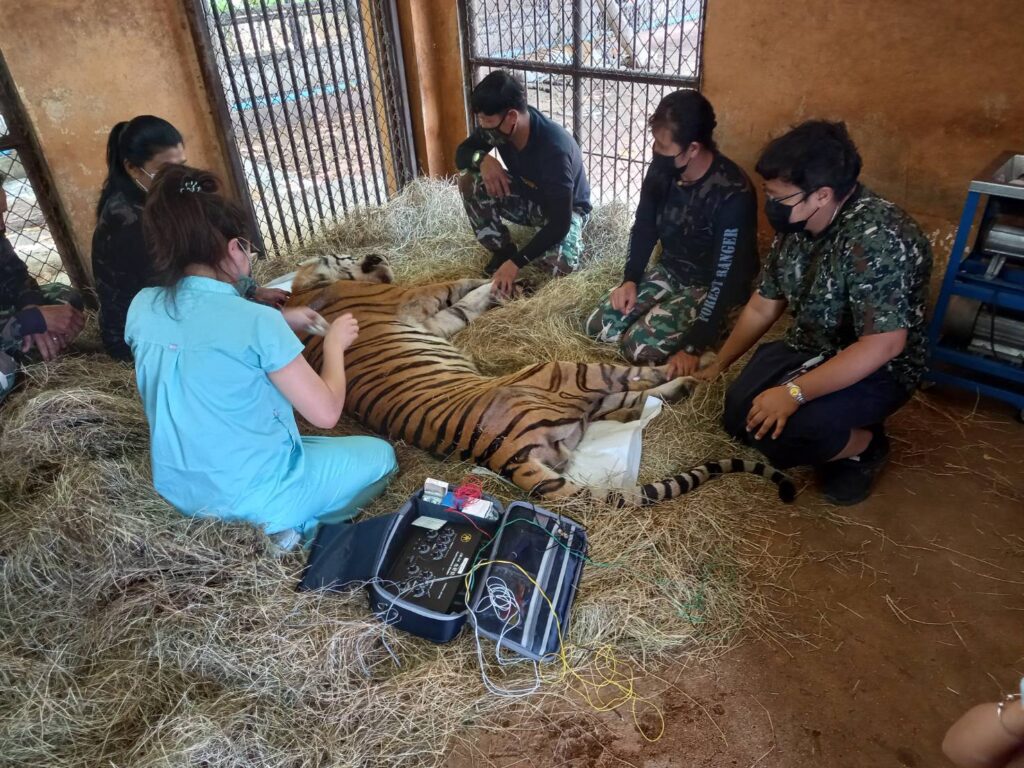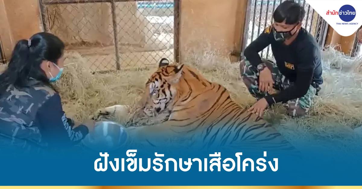 สุพรรณบุรี 28 มี.ค.-กรมอุทยานฯ ใช้การแพทย์ทางเลือกรักษาอาการป่วยของ “ลายแทง” เสือโคร่งชราที่ป่วยด้วยภาวะไตวายเรื้อรังและเดินไม่ได้ โดยฝังเข็มและทำกายภาพบำบัดให้เสือโคร่งต่อเนื่องเป็นครั้งที่ 2