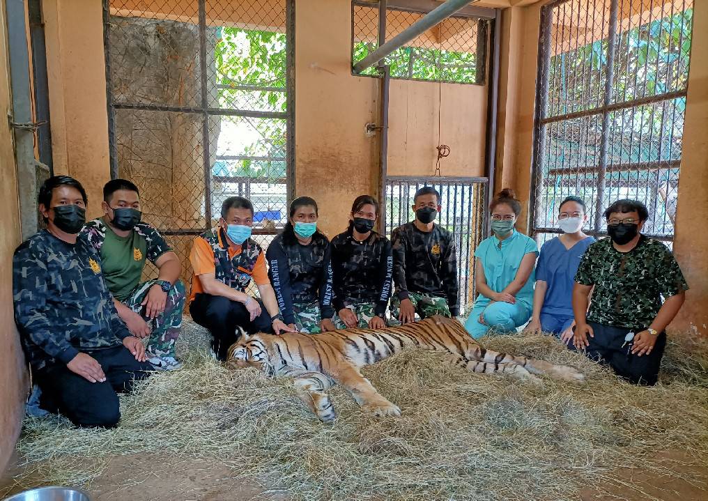 นายสุรศักดิ์ อนุเมธางกูร หัวหน้าเขตห้ามล่าสัตว์ป่าบึงฉวากและศูนย์พัฒนาการจัดการสัตว์ป่าบึงฉวากกล่าวว่า เจ้าหน้าที่กรมอุทยานแห่งชาติ สัตว์ป่า และพันธุ์พืชได้รักษาอาการป่วยเสือโคร่ง เพศผู้ ชื่อลายแทง อายุ 19 ปี โดยใช้การแพทย์ทางเลือก โดยได้รับความอนุเคราะห์ทีมสัตวแพทย์และเจ้าหน้าที่ผู้เชี่ยวชาญ พร้อมอุปกรณ์การรักษาจากโรงพยาบาลสัตว์แอนิมอลสเปซ