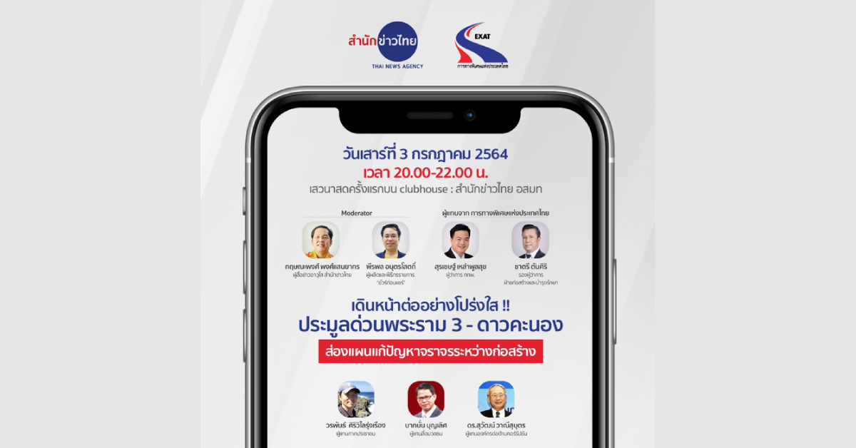 ผู้สื่อข่าวรายงานว่า เมื่อวันที่ 3 ก.ค. 2564 ที่ผ่านมา สำนักข่าวไทย อสมท จัดเสวนาผ่านแอปพลิเคชัน Clubhouse หัวข้อ “เดินหน้าต่ออย่างโปร่งใส!! ประมูลด่วนพระราม 3-ดาวคะนอง ส่องแผนแก้ปัญหาจราจรระหว่างก่อสร้าง” โดยมีผู้ร่วมสนทนา ประกอบด้วย นายสุรเชษฐ์ เหล่าพูลสุข ผู้ว่าการการทางพิเศษแห่งประเทศไทย (กทพ.), นายชาตรี ตันศิริ รองผู้ว่าการ ฝ่ายก่อสร้างและบำรุงรักษา กทพ., ดร.สุวัฒน์ วาณีสุบุตร ผู้แทนองค์กรต่อต้านคอร์รัปชัน, นายบากบั่น บุญเลิศ ประธานกรรมการ บริษัท ฐานเศรษฐกิจ มัลติมีเดีย จำกัด ในฐานะผู้แทนสื่อมวลชน และนายวรพันธ์ ศิริวิไลรุ่งเรือง ผู้แทนภาคประชาชนนั้น