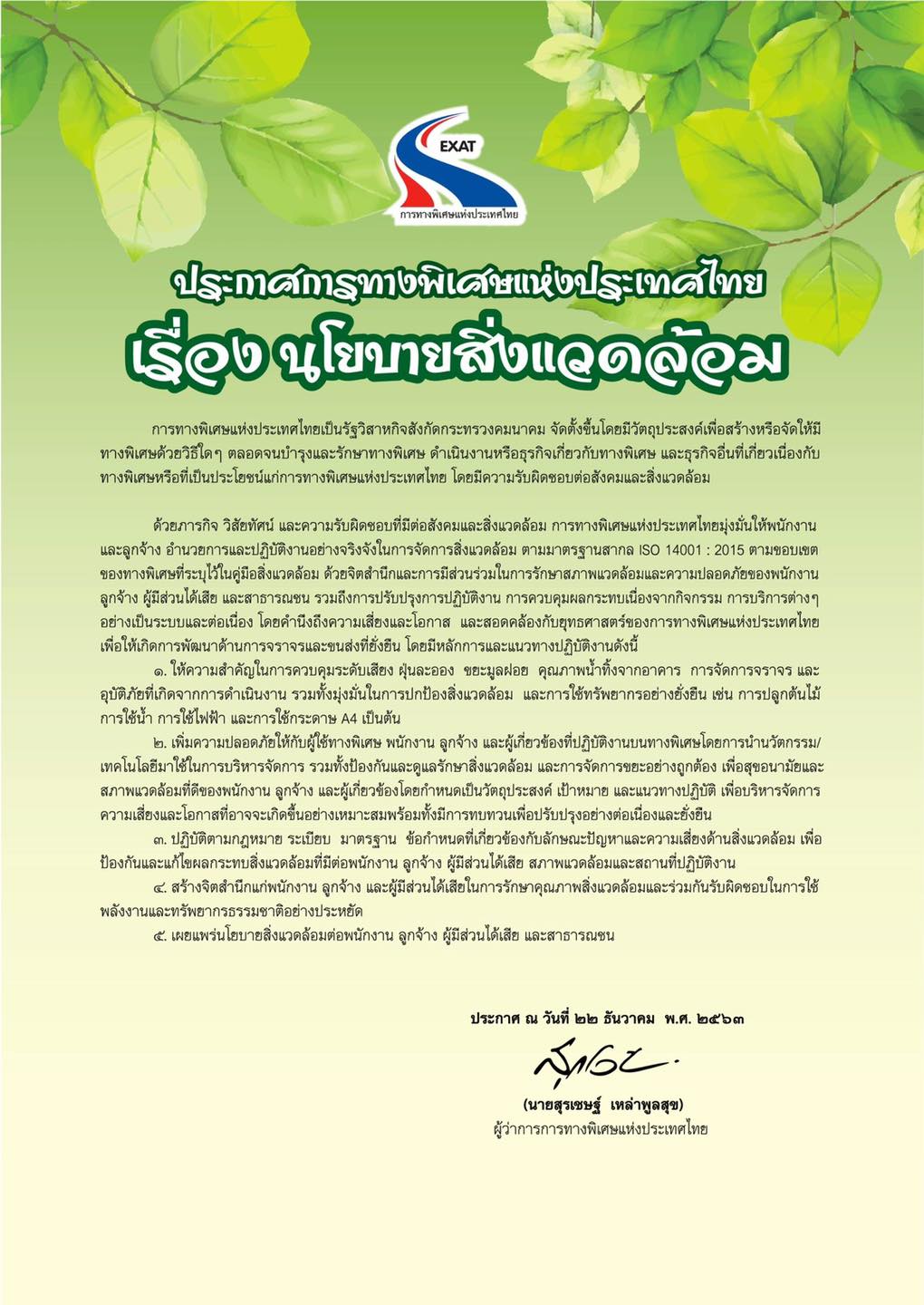 ด้วยภารกิจ วิสัยทัศน์ และความรับผิดชอบที่มีต่อสังคมและสิ่งแวดล้อม การทางพิเศษแห่งประเทศไทยมุ่งมั่นให้พนักงานและลูกจ้าง อำนวยการและปฏิบัติงานอย่างจริงจังในการจัดการสิ่งแวดล้อม ตามมาตรฐานสากล ISO 14001 : 2015 ตามขอบเขตของทางพิเศษที่ระบุไว้ในคู่มือสิ่งแวดล้อม ด้วยจิตสำนึกและการมีส่วนร่วมในการรักษาสภาพแวดล้อมและความปลอดภัยของพนักงาน ลูกจ้าง ผู้มีส่วนได้ส่วนเสีย และสาธารณชน รวมถึงการปรับปรุงการปฏิบัติงานการควบคุมผลกระทบเนื่องจากกิจกรรม การบริการต่าง ๆ อย่างเป็นระบบต่อเนื่อง โดยคำนึงถึงความเสี่ยงและโอกาส ซึ่งสอดคล้องกับยุทธศาสตร์ของการทางพิเศษแห่งประเทศไทย เพื่อให้เกิดการพัฒนาด้านการจราจรและขนส่งที่ยั่งยืน และ กทพ. จะยังคงมุ่งมั่นในการนำระบบการจัดการสิ่งแวดล้อมไปใช้ควบคู่กับการพัฒนาการทำงานตามบทบาทหน้าที่ และ ภารกิจให้เกิดประโยชน์แก่องค์กรอย่างสูงสุดและมีประสิทธิภาพต่อไป.-สำนักข่าวไทย