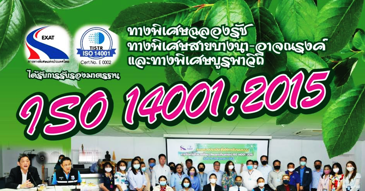 ในปีนี้ (วันที่ 9-10 สิงหาคม 2564) สำนักรับรองระบบคุณภาพ (สรร.) ซึ่งเป็นผู้ให้การรับรองระบบการจัดการสิ่งแวดล้อม ISO 14001:2015 ได้ทำการตรวจประเมินเพื่อติดตามผลการรับรองระบบการจัดการสิ่งแวดล้อม ISO 14001:2015 ประจำปี 2564 ของทางพิเศษฉลองรัช ทางพิเศษสายบางนา – อาจณรงค์ ทางพิเศษบูรพาวิถี และการให้บริการที่เกี่ยวข้อง ได้แก่