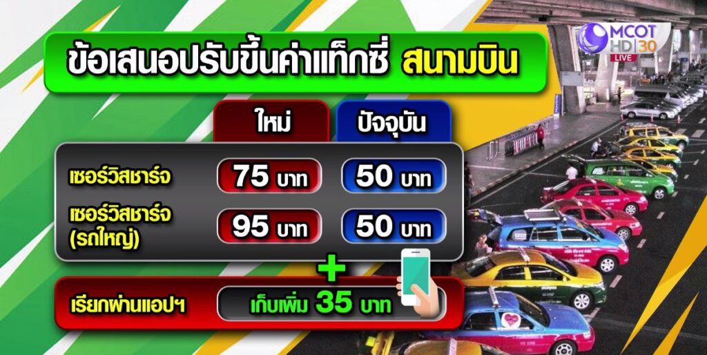 ทั้งนี้ จากปัจจุบันทั้งรถเล็กรถใหญ่เริ่มต้นที่ 35 บาท กิโลเมตรที่ 2-10 คิดเพิ่มกิโลเมตรละ 5.50 บาท ส่วนกรณีจ้างผ่านศูนย์บริการสื่อสาร หรือผ่านแอปพลิเคชันเก็บเพิ่มอีก 35 บาท โดยผู้ประกอบการขอความเห็นใจ ระบุถึงความจำเป็นต้องปรับค่าโดยสาร