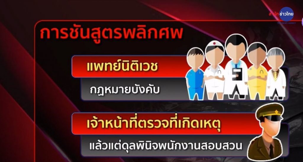 พญ.คุณหญิงพรทิพย์ โรจนสุนันท์ ส.ว. และอดีตผู้อำนวยการสถาบันนิติวิทยาศาสตร์ ระบุว่าการแนวทางการสืบสวนสอบสวนในคดีต่างๆ ต้องประกอบกันทั้งหลักฐานทางนิติวิทยาศาสตร์ เอกสาร และพยานบุคคล สำหรับประเด็นความเร็วรถ แนวทางนิติวิทยาศาสตร์พบว่าหากเป็นการชนที่รถความเร็วไม่มาก และมีการเบรกอย่างแรง ผู้ถูกชนจะล้มลงและรถจะเคลื่อนทับ หากรถแล่นด้วยความเร็วไม่มากแล้วเบรกกะทันหัน คนถูกชนจะกระเด็นไปข้างหน้า แต่หากรถแล่นมาด้วยความเร็วสูง โดยไม่มีการเบรกหรือเบรกน้อย ลักษณะจะเป็นการชนเสยมาถูกระจกรถแล้วกระเด็นไปข้างหลัง ซึ่งพบว่ารถเฟอร์รารี่คันเกิดเหตุมีร่องรอยกระจกหน้ารถแตก