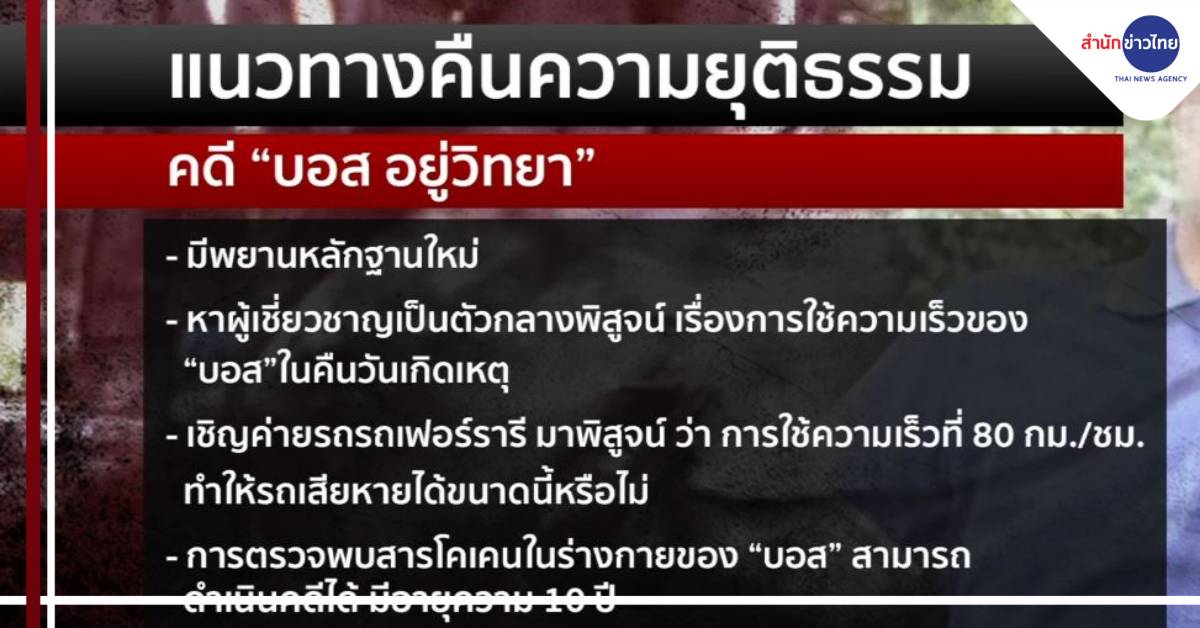 อาจารย์ปริญญา ย้ำแนวทางที่จะคืนความยุติธรรมในคดีนี้ได้ สำนักงานอัยการสูงสุด และสำนักงานตำรวจแห่งชาติต้องส่งเรื่องให้ศาลยุติธรรมเป็นผู้พิจารณา เพื่อความโปร่งใส ชี้การขอให้ทบทวน “คำสั่งไม่ฟ้อง” ของอัยการ เป็นเรื่องที่ทำได้ เนื่องจากมีพยานหลักฐานใหม่ในหลายส่วน เช่น การหาผู้เชี่ยวชาญเข้ามาเป็นตัวกลางพิสูจน์หาข้อยุติเรื่องการใช้ความเร็วของ “บอส” ในคืนวันเกิดเหตุ เชิญค่ายรถรถเฟอร์รารี่มาพิสูจน์กันให้เห็นชัดๆ ว่า การใช้ความเร็วที่ 80 กิโลเมตรต่อชั่วโมง ทำให้รถพังเสียหายได้ขนาดนี้หรือไม่ ที่สำคัญการตรวจพบสารโคเคนในร่างกายของ “บอส” ก็สามารถดำเนินคดีในข้อหาเสพยาเสพติดให้โทษประเภทที่ 2 ได้ ซึ่งยังมีอายุความถึง 10 ปี