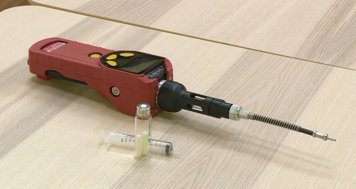 ส่วนเครื่องตรวจโควิด-19 ด้วยกลิ่น เป็นเครื่องตรวจสารระเหยง่าย ชื่อเครื่อง Photoionization Detector ปกติใช้ตรวจสารระเหยง่าย เมื่อสารลอยเข้าเครื่องก็จะส่งสัญญาณ การใช้เครื่องนี้จึงต้องดัดแปลง