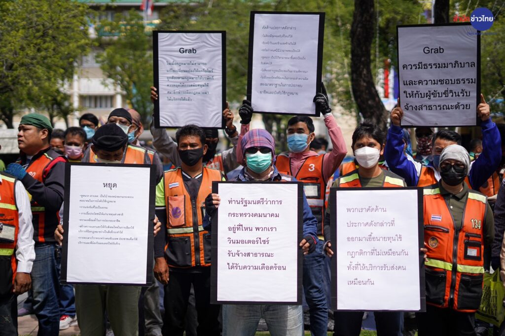 18 ส.ค.2565 กลุ่มคณะทำงานแก้ไขปัญหาความเดือดร้อนของผู้ขับขี่มอเตอร์ไซค์รับจ้างสาธารณะ ประกอบด้วย สมาคมผู้ขับขี่รถจักรยานยนต์ไฟฟ้า (EV) รับจ้างสาธารณะ, ชมรมพิทักษ์สิทธิ์จักรยานยนต์รับจ้างสาธารณะ, สมาคมผู้ขับขี่รถจักรยานยนต์รับจ้างแห่งประเทศไทย, ชมรมผู้ขับขี่รถจักรยานยนต์สาธารณะแห่งกรุงเทพมหานคร ประมาณ 100 – 200 คน นำโดย นายกสมาคมผู้ขับขี่รถจักรยานยนต์ไฟฟ้า (EV) สาธารณะ นัดรวมตัวหน้ากระทรวงคมนาคม เพื่อติดตามทวงถามถึงผลความคืบหน้าในการปิดแอปพลิเคชัน Grab แพลตฟอร์ม BOLT และ NI DRIVER ที่กระทำความผิดในการรับ – ส่งผู้โดยสาร ตลอดจนการบังคับใช้กฎหมายกับบริษัทต่าง ๆ ที่นำรถผิดกฎหมายมาให้บริการ และคัดค้านการขยายเวลาให้คนขับแกร็บไบค์ และบริษัทแกร็บออกไปอีก 60 วัน