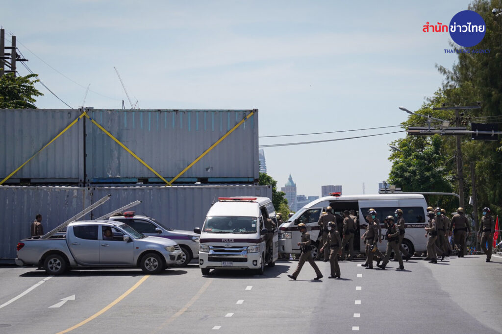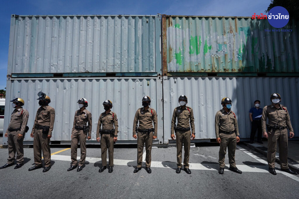 อย่างไรก็ตาม มีเจ้าหน้าที่ตำรวจควบคุมฝูงชน จำนวน 20 นาย ยืนอยู่บริเวณด้านหน้าตู้คอนเทนเนอร์ โดยมีแผงรั้วเหล็กกั้นอีกชั้นหนึ่ง