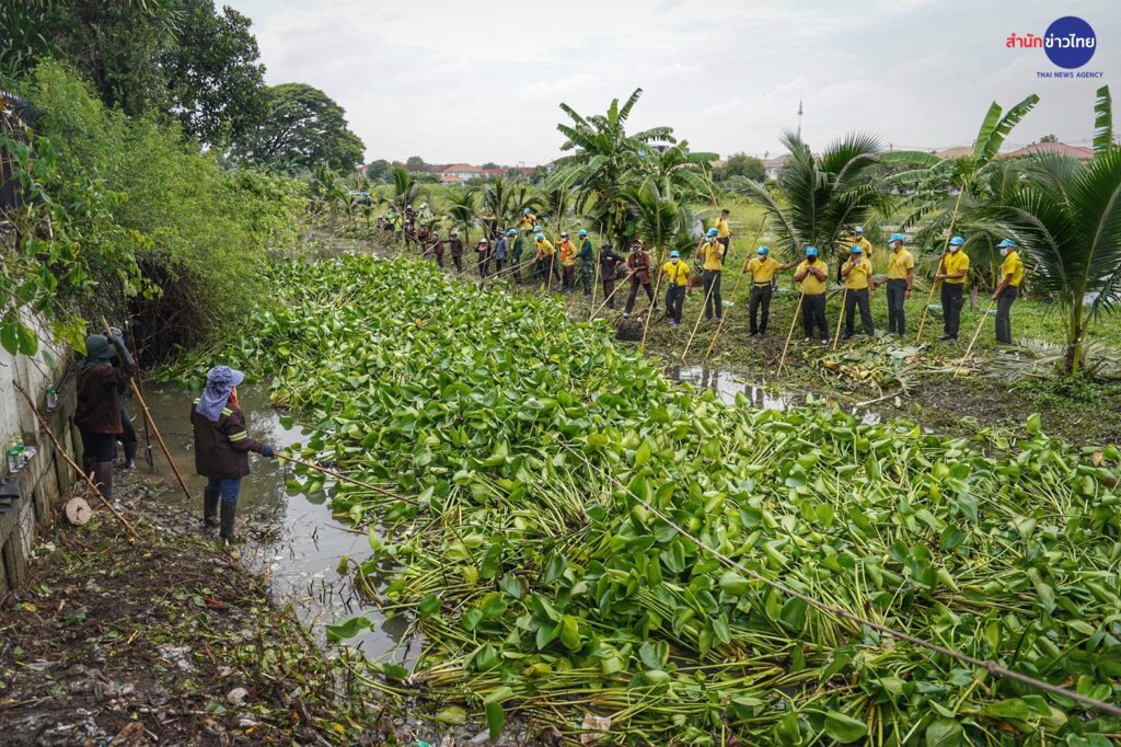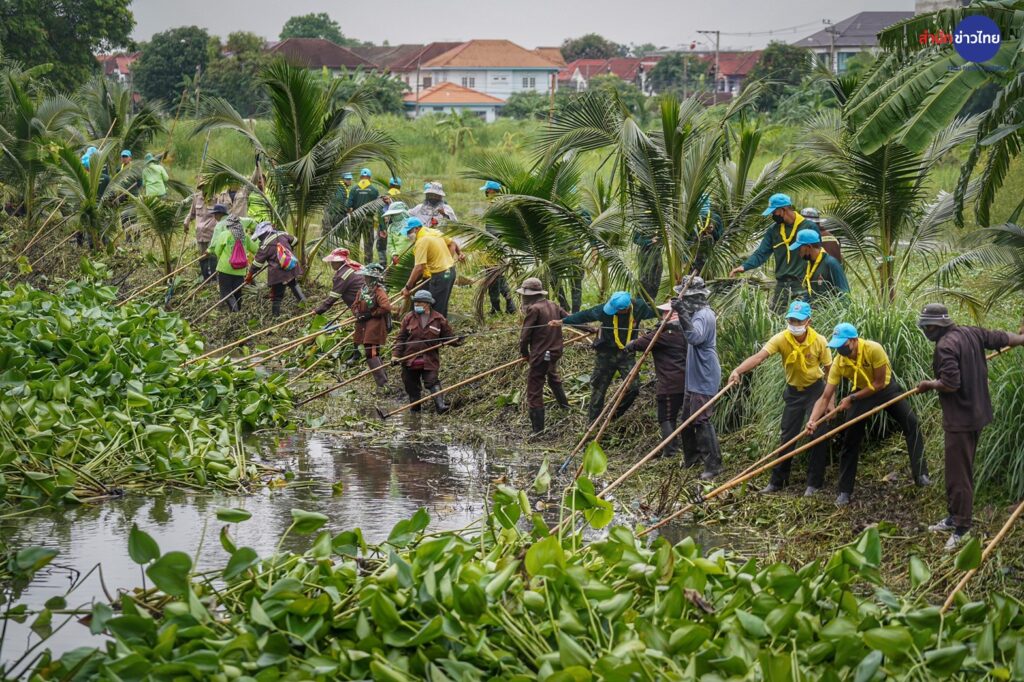 โดยวันนี้ ใช้แรงคนรวมกันกว่า 100 คน และมีรถตักผักตบชวาในการช่วยขนกำจัดยกขึ้นจากลำคลอง เนื่องจากผักตบชวาโตเต็มที่ กระจายอยู่หนาแน่นจนเต็มคลอง