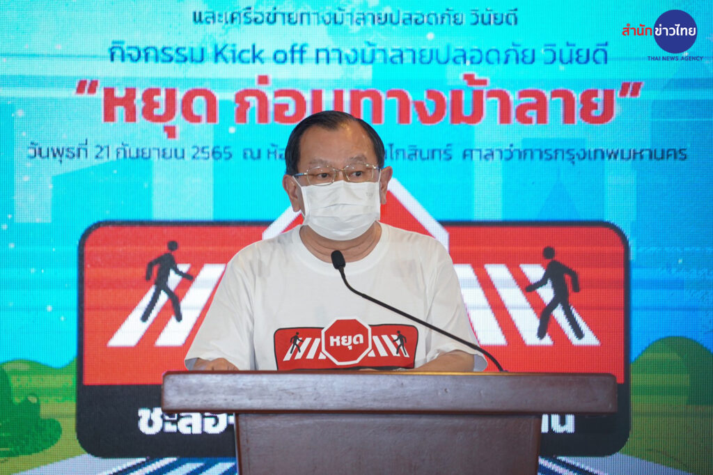 21 ก.ย.2565 คิกออฟ “ทางม้าลายปลอดภัยวินัยดี หยุดก่อนทางม้าลาย” โดย สผผ. ร่วมกับ สสส. เครือข่ายทางม้าลายปลอดภัยวินัยดี และ กทม. เร่งแก้ปัญหาเชิงระบบ ทั้งกฎหมาย-กายภาพถนน ตั้งเป้า 1 ปี ทุกทางม้าลายจะต้องหยุดให้คนเดินข้าม