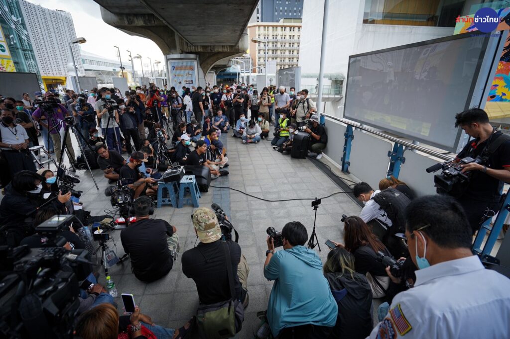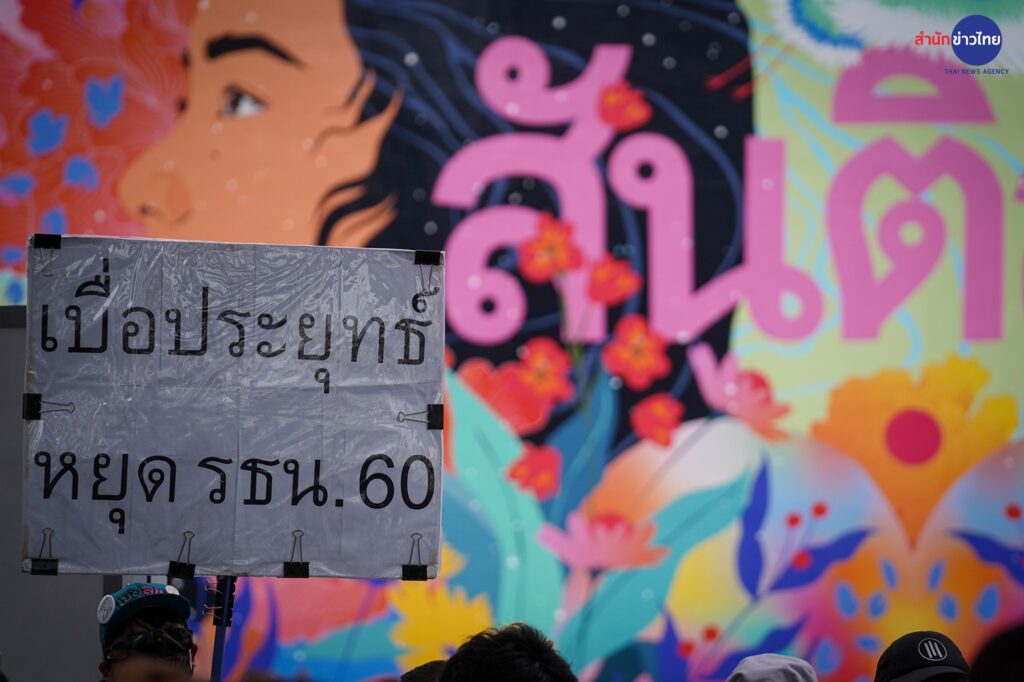 30 ก.ย.2565 การชุมนุมของกลุ่มแนวร่วมธรรมศาสตร์และการชุมนุม ที่บริเวณสกายวอล์ก แยกปทุมวัน เริ่มขึ้นตั้งแต่ช่วง 14.00 น. ที่ผ่านมา กลุ่มผู้ชุมนุมเริ่มทยอยเข้าพื้นที่ เพื่อติดตามการอ่านคำวินิจฉัยของศาลรัฐธรรมนูญ กรณีที่ฝ่ายค้านได้ยื่นร้องให้วินิจฉัย ปมการดำรงตำแหน่งนายกรัฐมนตรี 8 ปี ของ พล.อ.ประยุทธ์ จันทร์โอชา