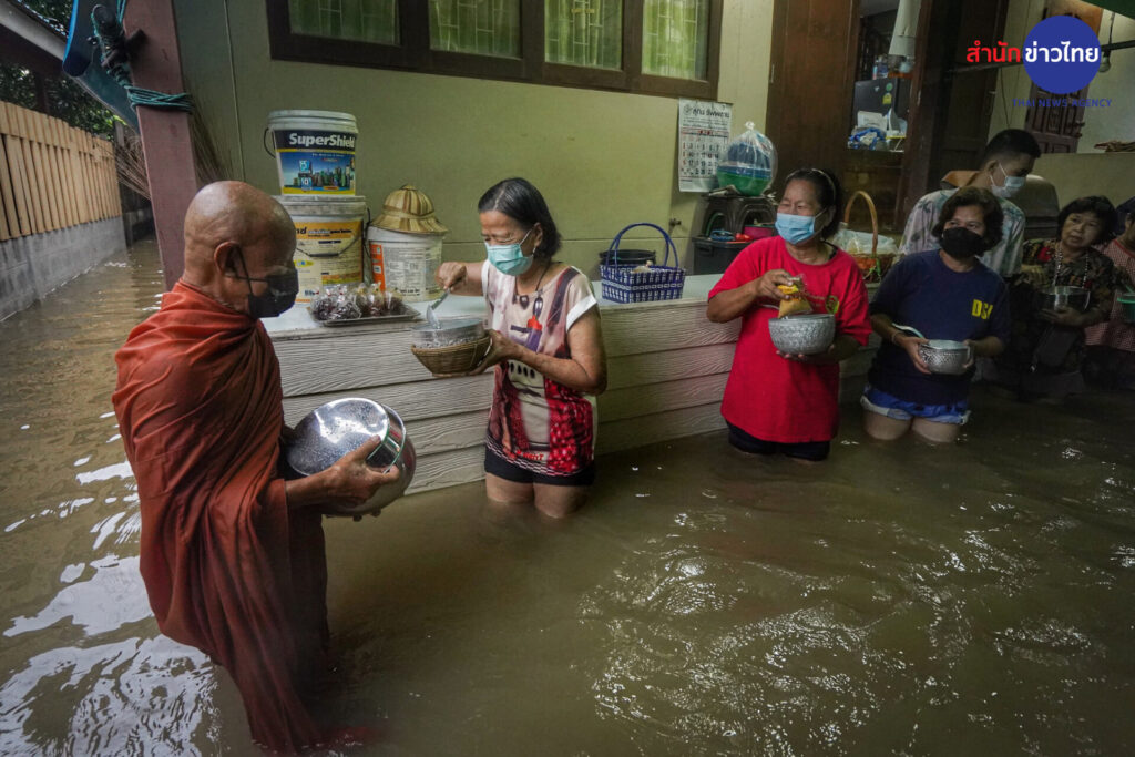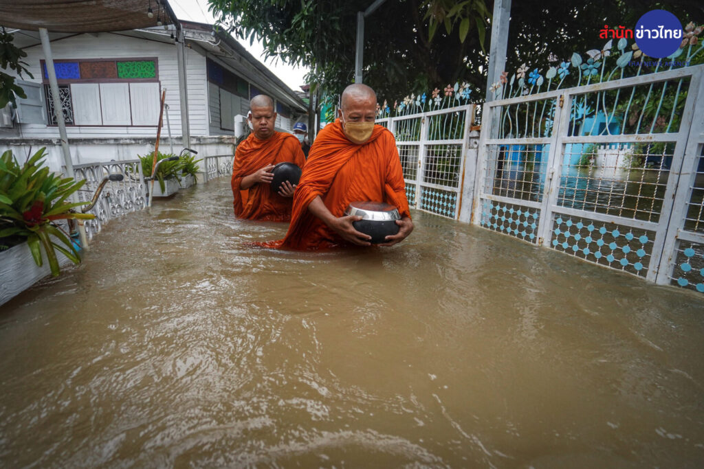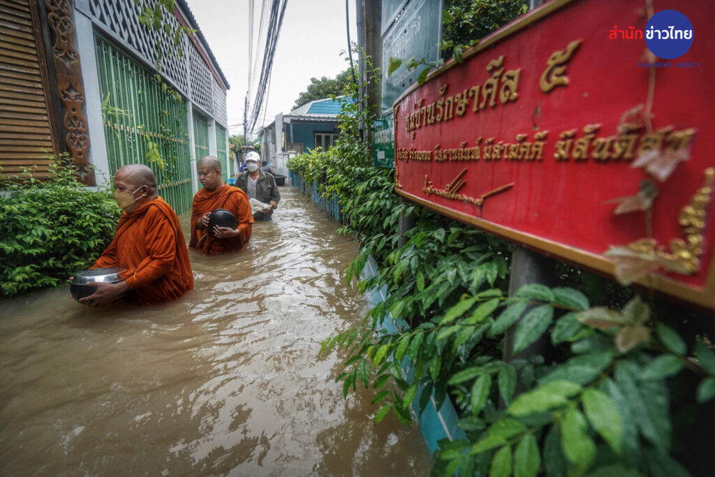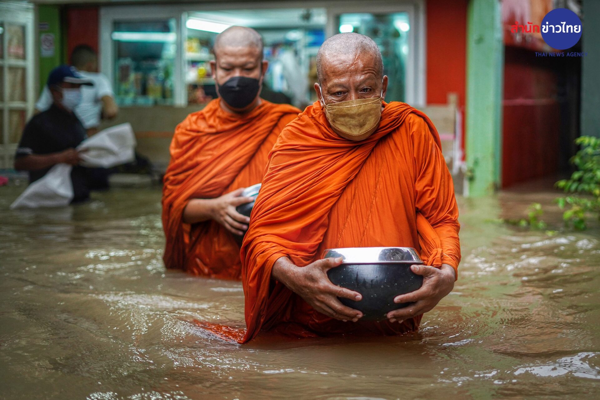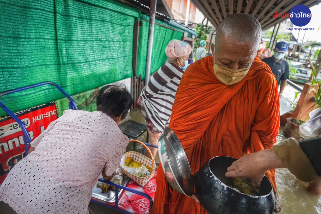 11 ต.ค.2565 เมื่อเวลา 06.30 น. พระสงฆ์วัดปรมัยยิกาวาส เดินบิณฑบาตลุยน้ำท่วมสูง ภายในเกาะเกร็ด จ.นนทบุรี โดยมีประชาชนมารอทำบุญตักบาตร พระสงฆ์ ตลอดเส้นทาง