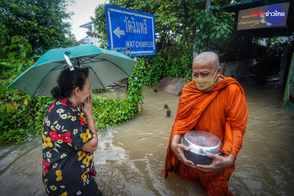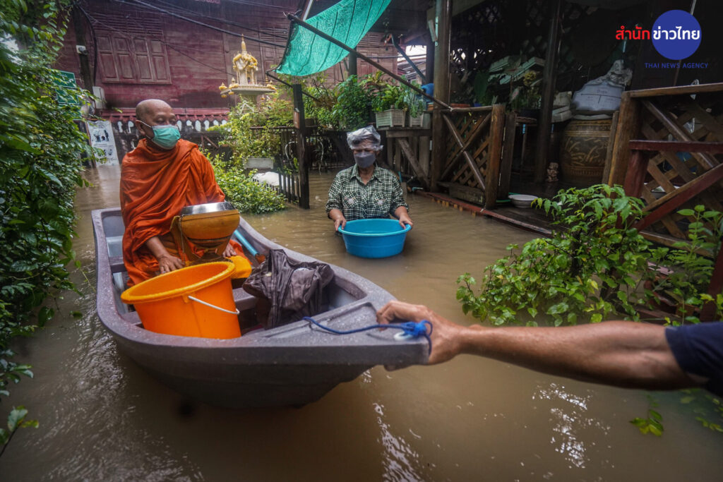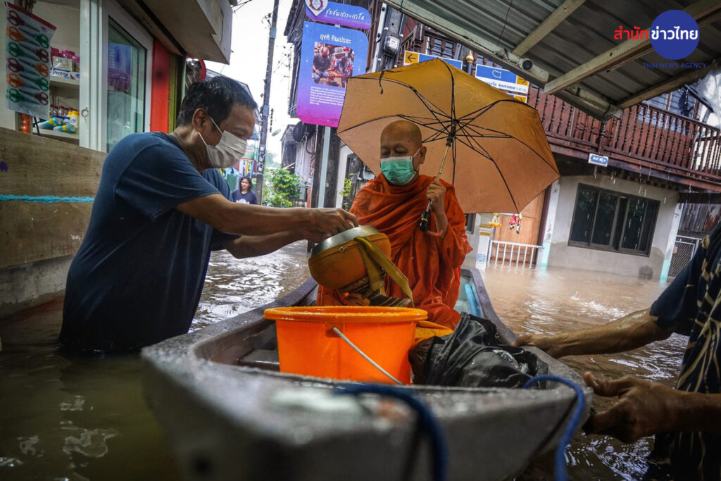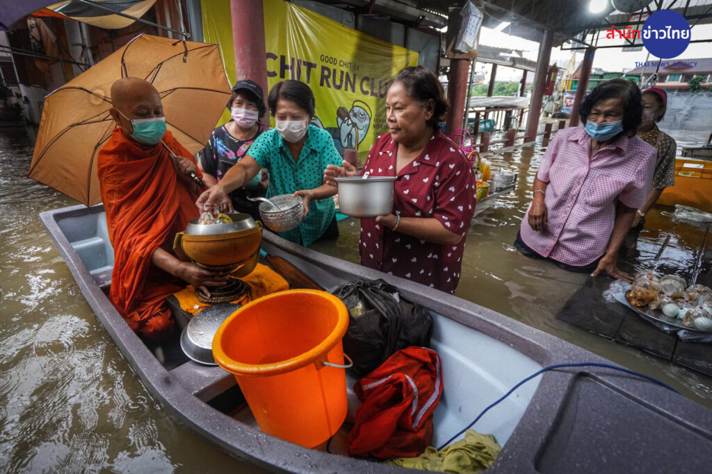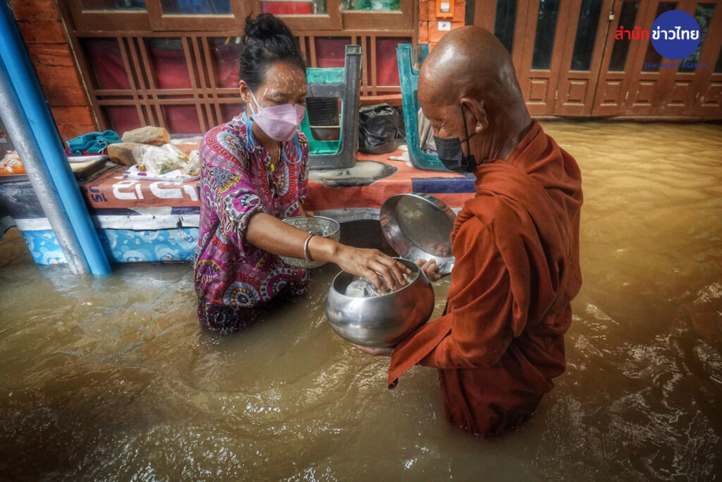 11 ต.ค.2565 เมื่อเวลา 06.30 น. พระสงฆ์วัดปรมัยยิกาวาส เดินบิณฑบาตลุยน้ำท่วมสูง ภายในเกาะเกร็ด จ.นนทบุรี โดยมีประชาชนมารอทำบุญตักบาตร พระสงฆ์ ตลอดเส้นทาง