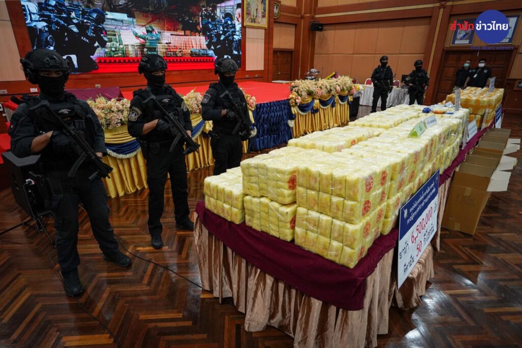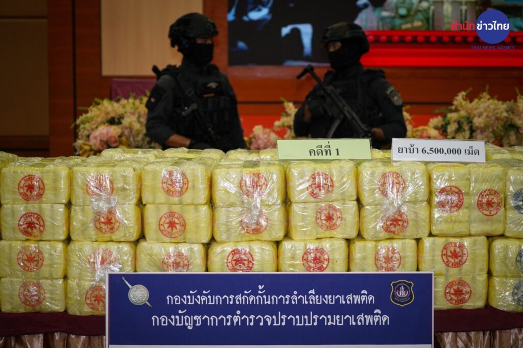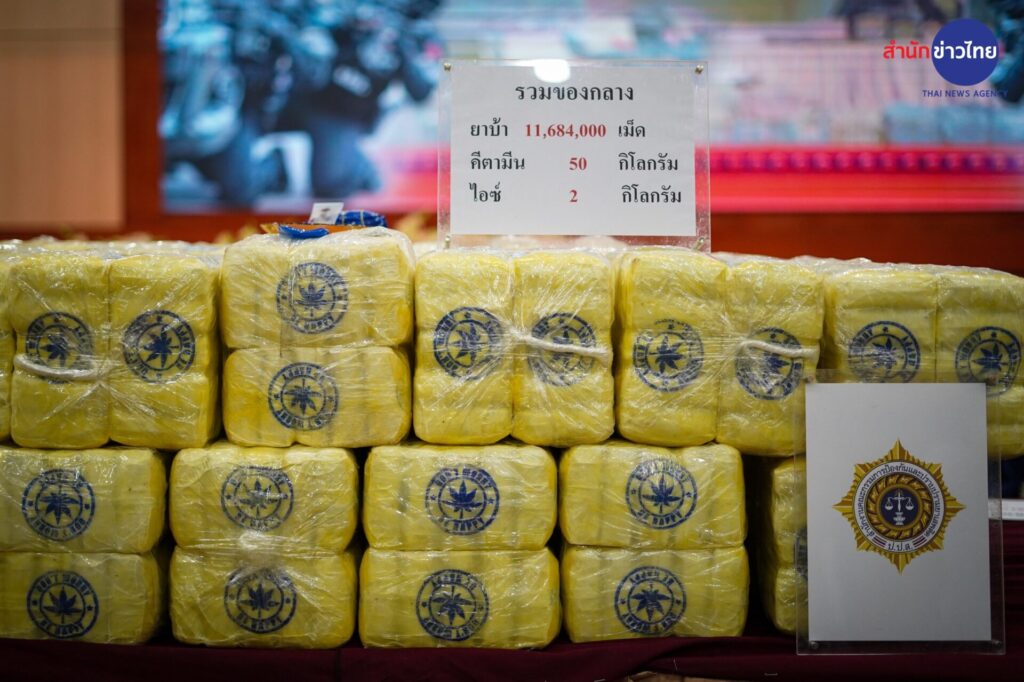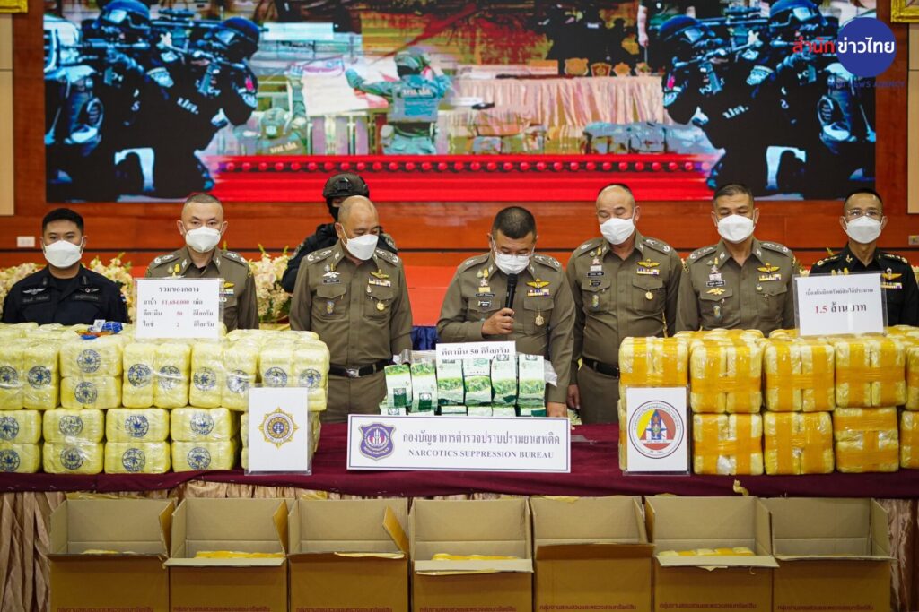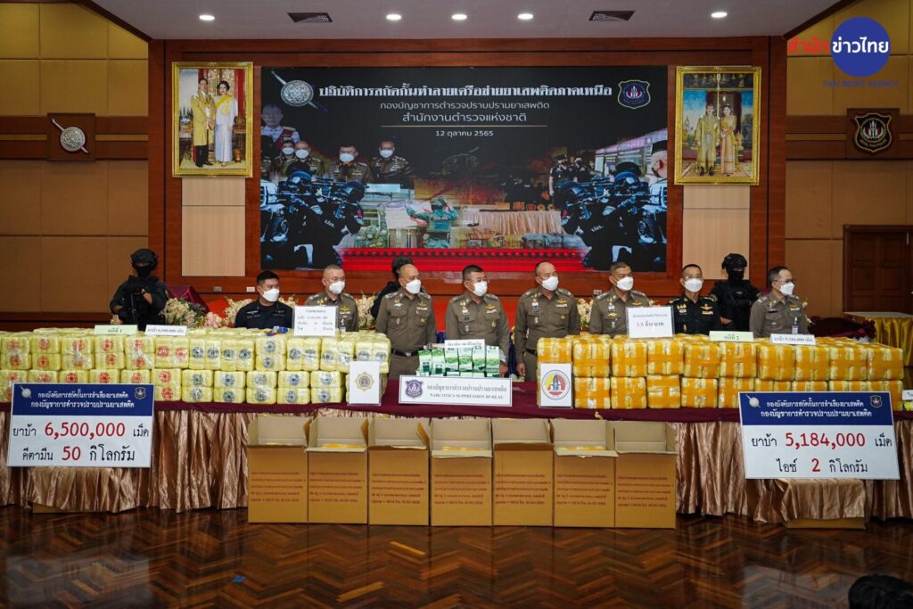 12 ต.ค.2565 พล.ต.อ.ดำรงศักดิ์ กิตติประภัสร์ ผบ.ตร. ร่วมแถลงผลการจับกุม 2 เครือข่ายยาเสพติดรายสำคัญในพื้นที่ภาคเหนือ ได้ของกลางเป็นยาบ้าจำนวน 11.6 ล้านเม็ด เคตามีน 50 กิโลกรัม ยาไอซ์ 2 กิโลกรัม และยึดทรัพย์ได้ 1.5 ล้านบาท ที่กองบัญชาการตำรวจปราบปรามยาเสพติด ถนนวิภาวดี