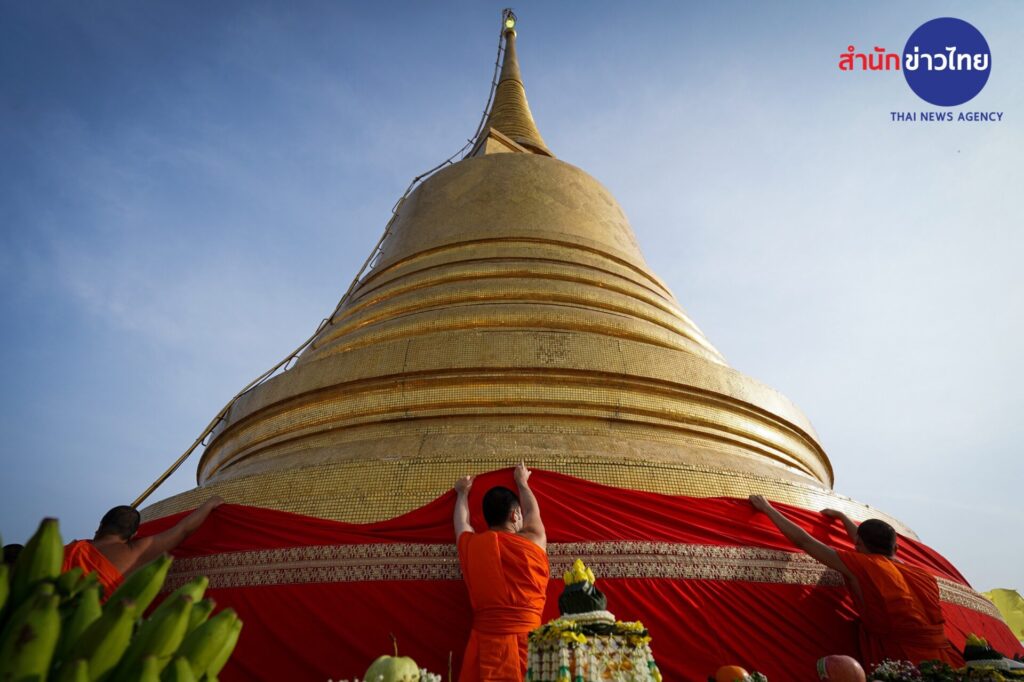 โดยพิธีห่มผ้าแดงภูเขาทอง เป็นพิธีศักดิ์สิทธิ์ที่ปฏิบัติสืบทอดต่อกันมายาวนาน มีความเชื่อว่าการได้ห่มผ้าแดงองค์พระธาตุ จะสร้างอานุภาพแห่งการบูชาพระเจดีย์ด้วยผืนผ้าที่พระบรมสารีริกธาตุ และทำให้เกิดความร่มเย็นเป็นสุข มีความเจริญก้าวหน้าในชีวิต แคล้วคลาดปลอดภัยจากอันตรายนานาประการ