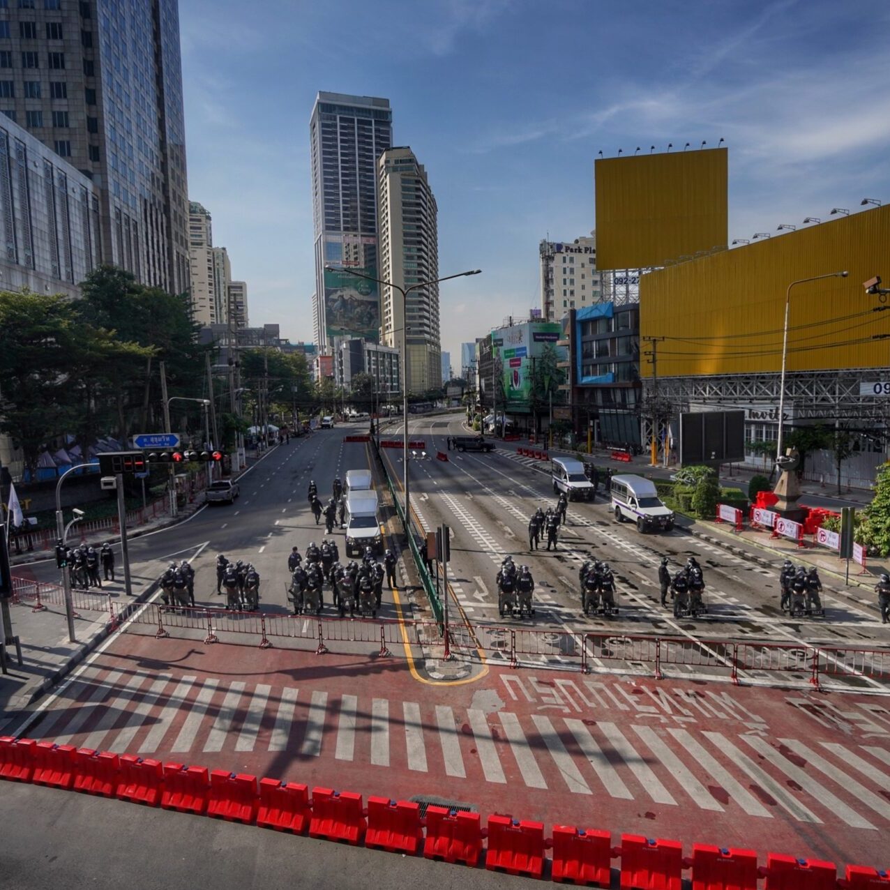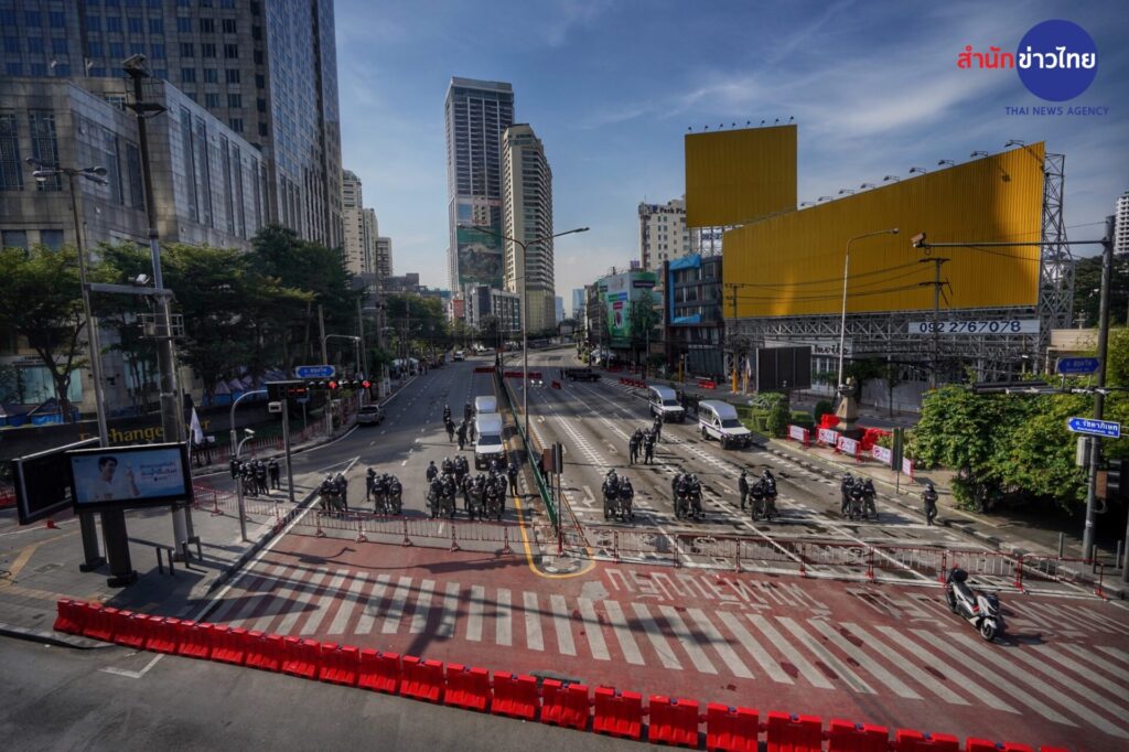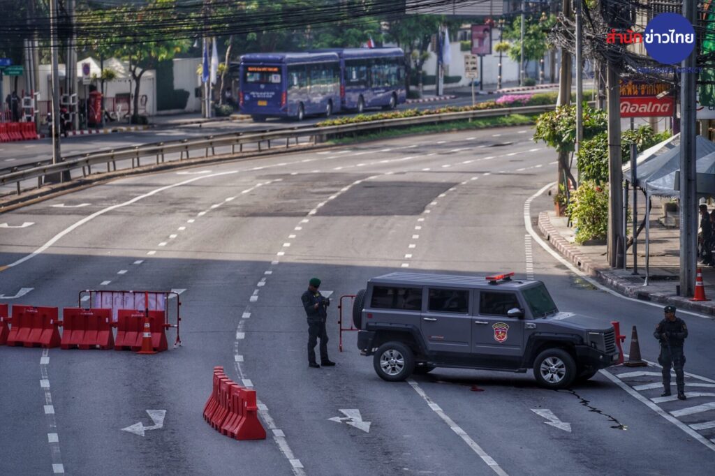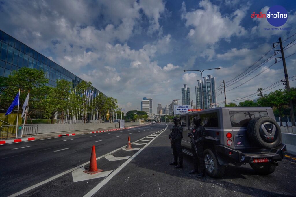 เส้นทางถนนรัชดาภิเษก แยกอโศกมนตรี ถึงแยกพระราม 4 และถนนดวงพิทักษ์ตลอดสาย มีการตั้งด่านความมั่นคงเฝ้าระวังอย่างเข้มงวดและปิดถนนตลอดทั้งเส้น ตั้งแต่ช่วงเที่ยงคืนที่ผ่านมา ตลอดช่วงเช้าภาพรวมด่านคัดกรองยังไม่พบความผิดปกติ สถานการณ์เป็นไปด้วยความเรียบร้อย