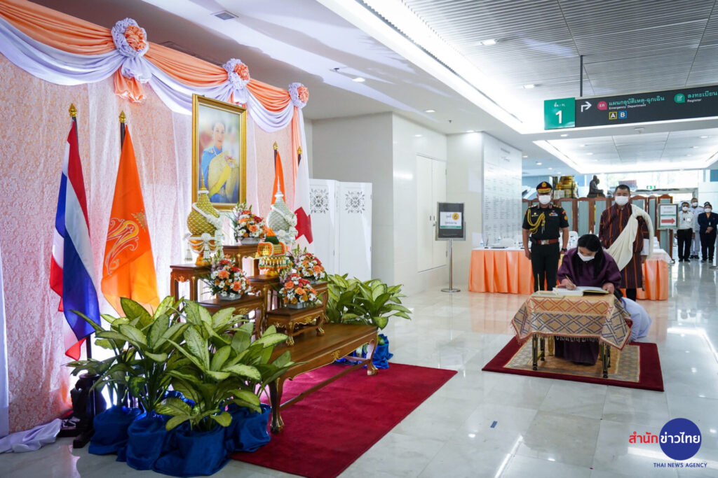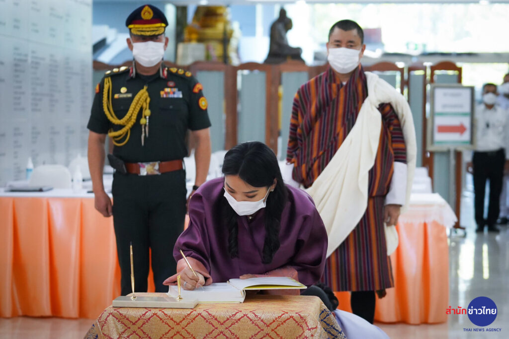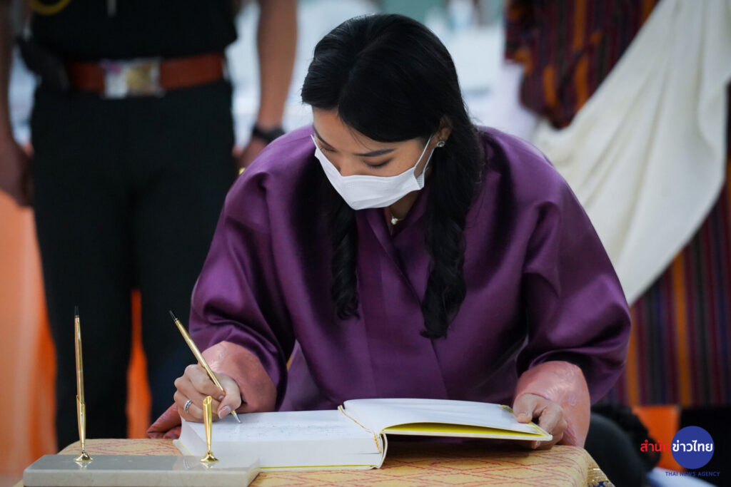 สมเด็จพระราชินีเจตซุน เพมา วังชุก แห่งราชอาณาจักรภูฏาน เสด็จพระราชดำเนินไปทรงวางแจกันดอกไม้ พร้อมทรงลงพระนามาภิไธยถวายพระพร สมเด็จพระเจ้าลูกเธอ เจ้าฟ้าพัชรกิติยาภา นเรนทิราเทพยวดี กรมหลวงราชสาริณีสิริพัชร มหาวัชรราชธิดา